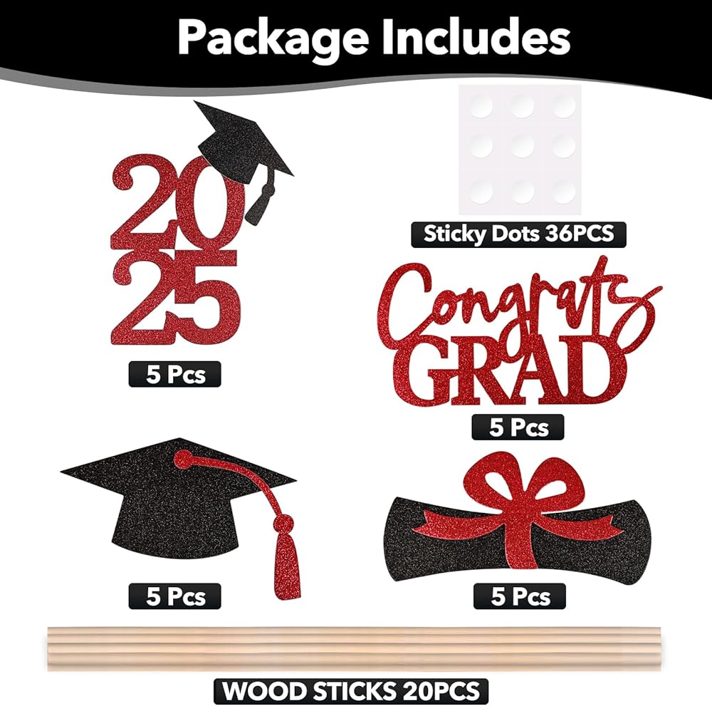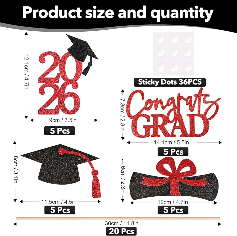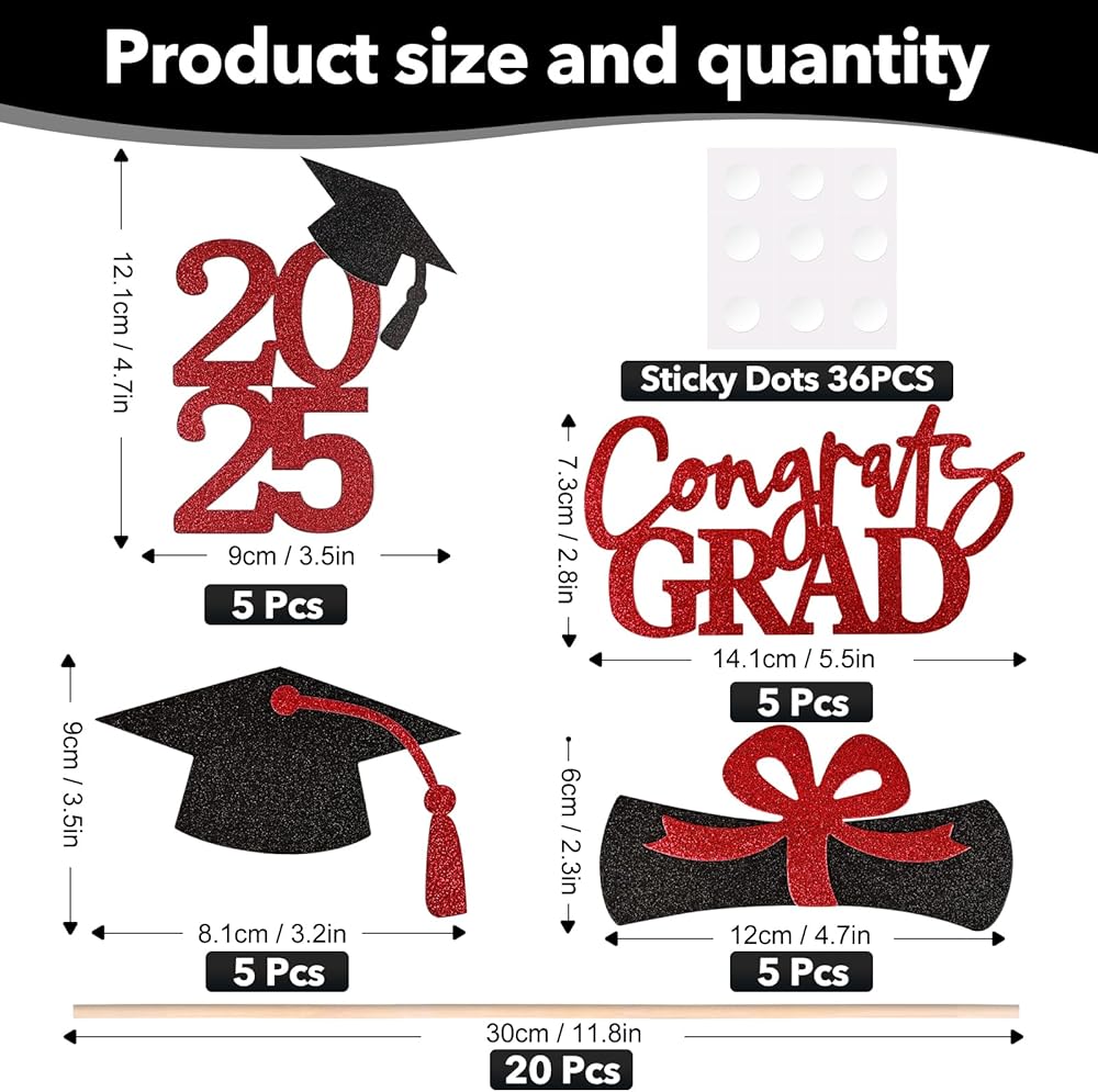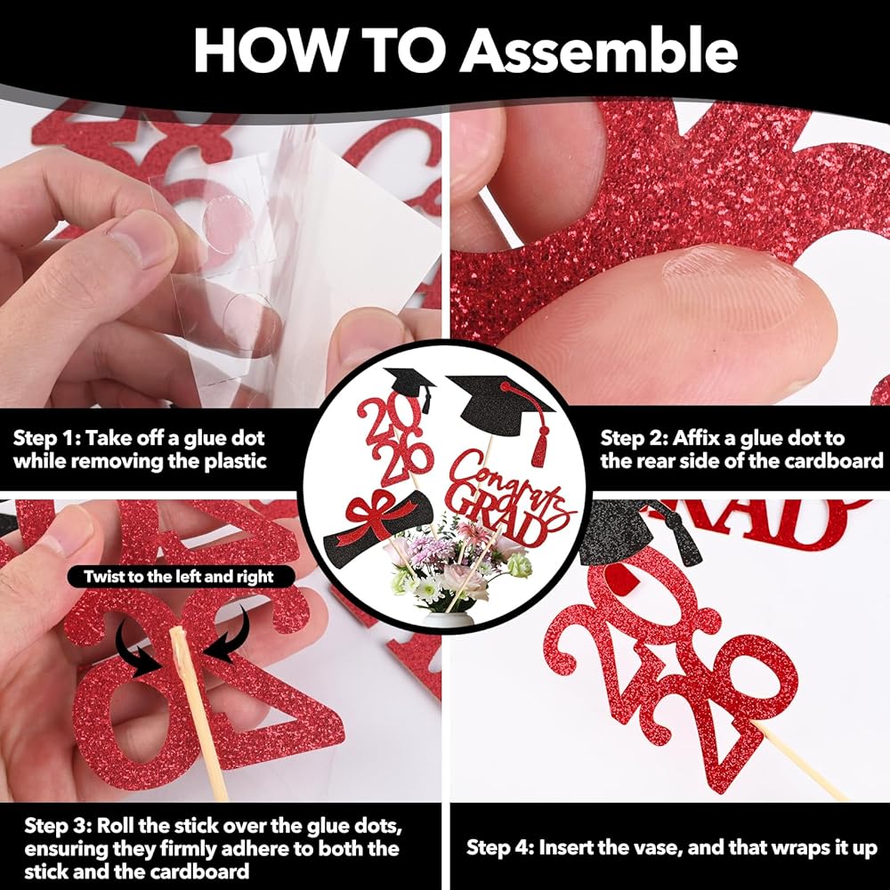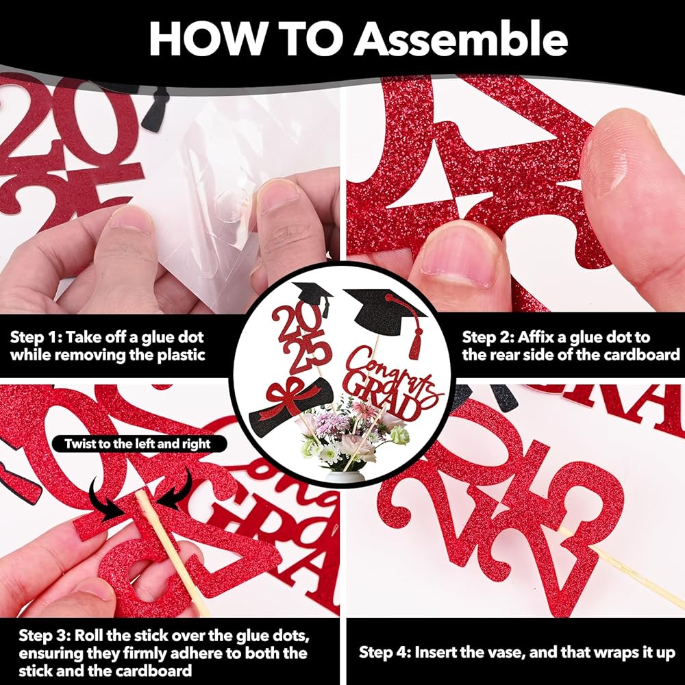 EASY INSTALLATION - Simple and easy to install, to make you spend less time assembling this graduation centerpieces 2024, we have designed each set of graduation party decorations with easy to stick glue dots, with these glue dots you are able to spend less time assembling and more time celebrating the graduation ceremony. Please refer to the assembly steps in detail to finish assembling the graduation decoration and keep it intact during the whole celebration.