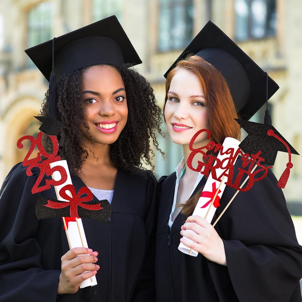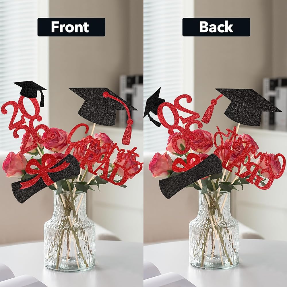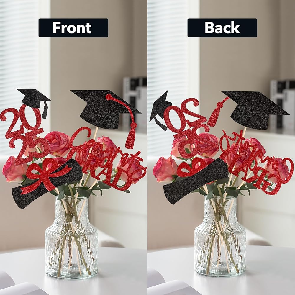PREMIUM MATERIAL - Made from high-quality material, these graduation centerpieces 2024 are made of premium material, which is sturdy and durable as well as safer for you, your kids or your students, no need to worry about any odor from the centerpiece table decorations. Sturdy card stock and professional non-marking glitter printing, won't cause the glitter to fall off.