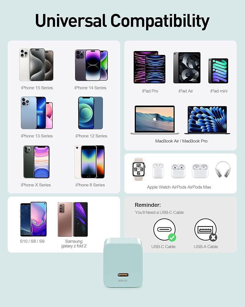 ✅ Superior Safety Type C Fast Charger: Upgraded with a 30W output so now you can charge your earbuds, phone, tablet, and even your MacBook Air with a tiny charger.