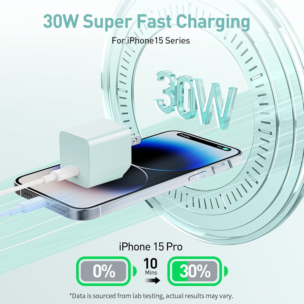 ✅ Supper Fast Charging PD 30W USB C Wall Charger: Fast Charging Technology can charge your Cell Phone/ Electronic Devices up to 20V/5A charge speed,Fast charge your battery from zero up to 100% in about 60min,5 times as fast as Stanbdard Charger Wall,10 times as fast as PC USB port and saves you time.
