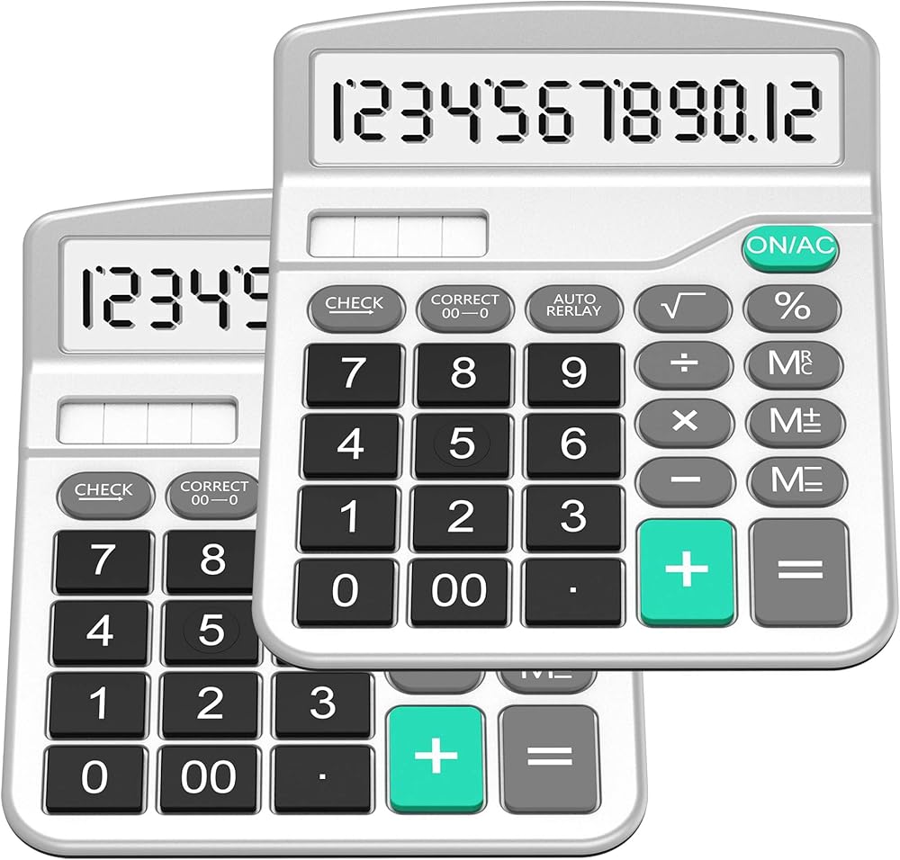 Calculator, Splaks 2 Pack Standard Functional Desktop Calculators Solar and AA Battery Dual Power Electronic Office Calculators with 12-Digit Large Display (1 Basic Black&1 Updated Silver)