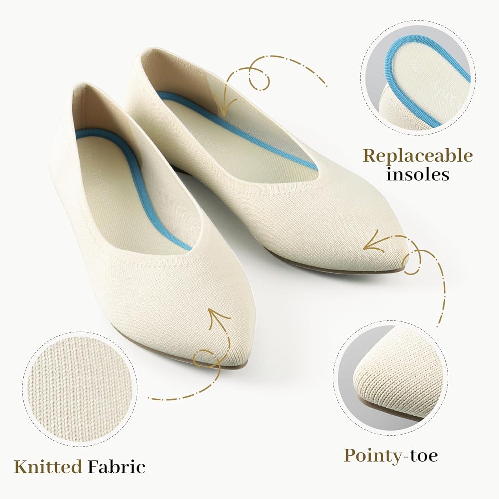 【Outer Material】:AprCoco Womens flats shoes with knit fabric that adopts seamless weaving technology to give you a comfortable wearing experience.At the same time, our flats are made of TPR outsole, the combination of knitted upper it features soft, light and flexible.