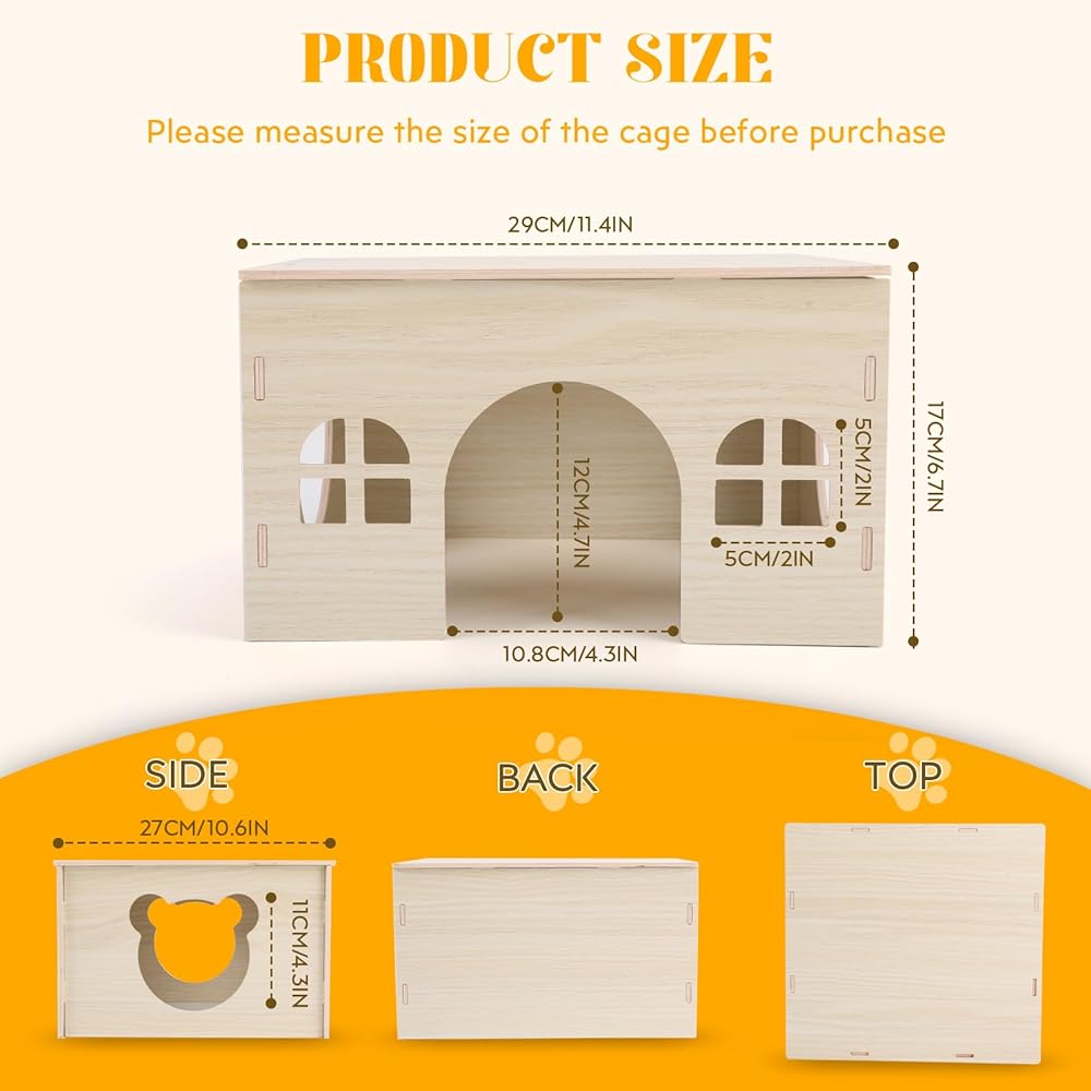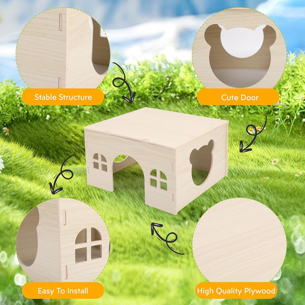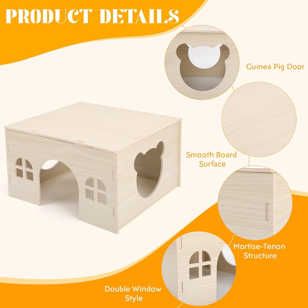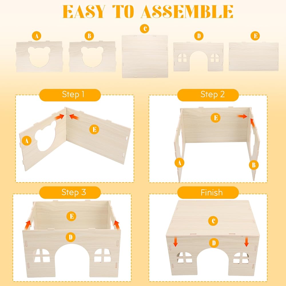 【Easy to Assemble】The guinea pig hut is very easy to put together. It came with straightforward and well-illustrated instructions. Follow the provided step-by-step instructions manual,took about 10 minute to assemble then you will get a utility guinea pig loft and hamster feeder. Notice:assembly can be challenging, requiring patience and careful fitting.