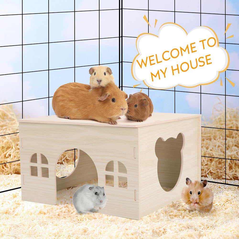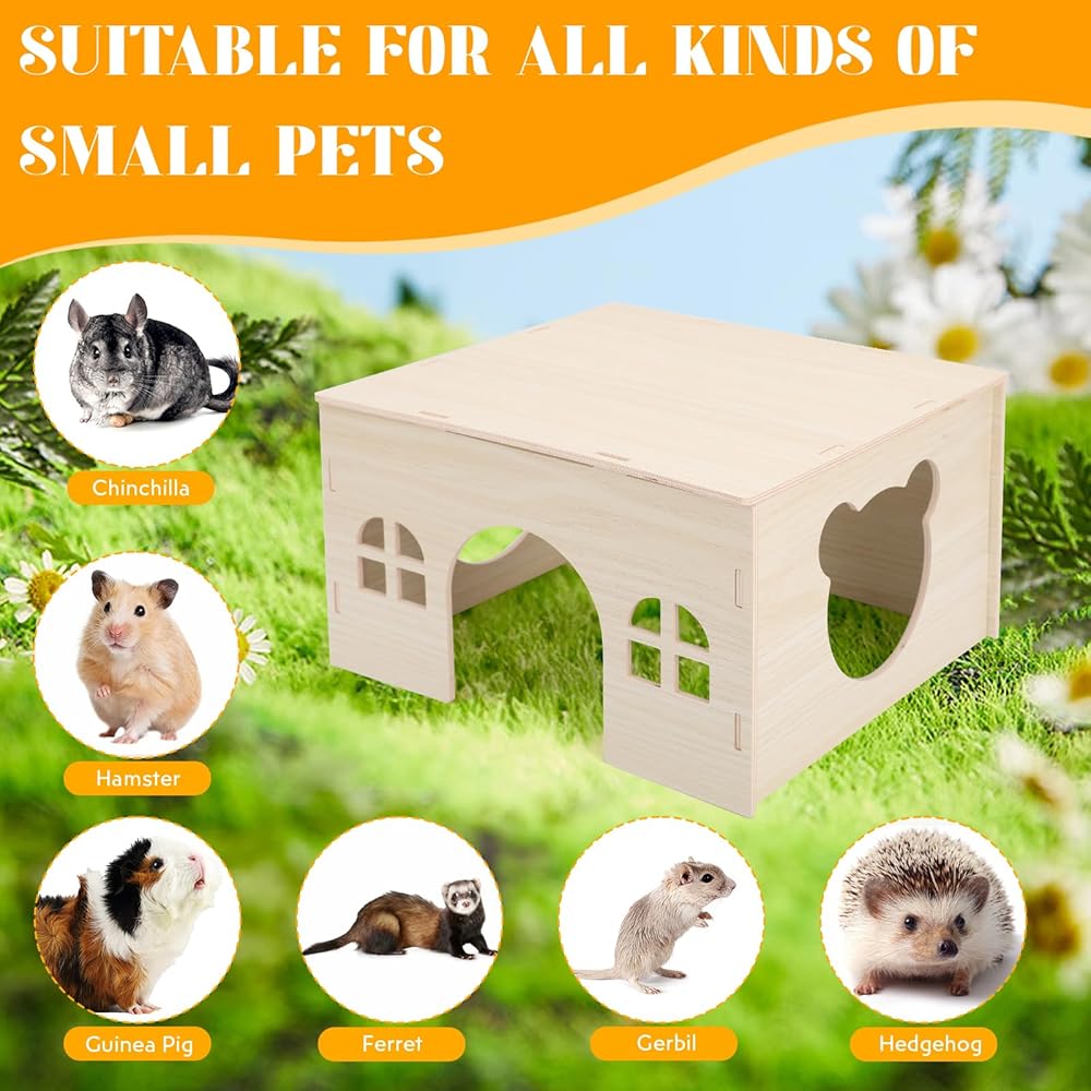 Guinea Pig Hideout Wooden House, Hamster House, Chinchilla Castle and Guinea Pig Hut with Windows, Small Animal Houses and Habitats for Hedgehogs, Rats, Ferret, Gerbils