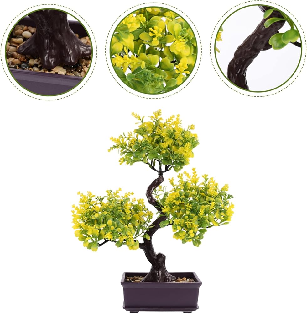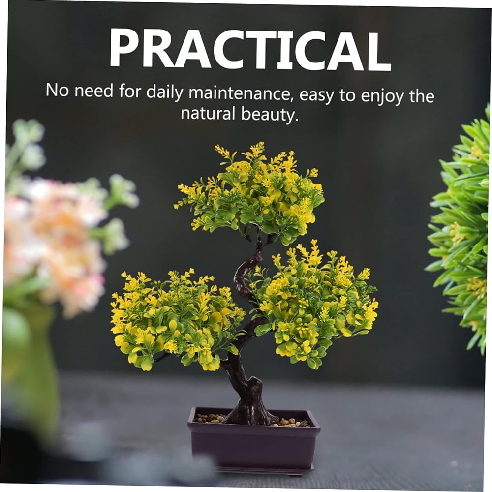 PLASTIC FLOWER POT-- Application: Artificial plants bonsai tree for home decor, prefect for office, living room, bedroom, table, bookshelf, Fake small plants decor a peaceful feeling to any where.