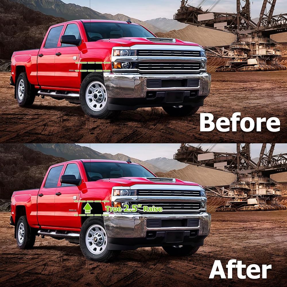 【Easy To Install】The leveling Lift Kits is equipped with everything you need for a simple bolted installation. This process can be completed within 2 hours without preloading,cutting or modifying any factory parts