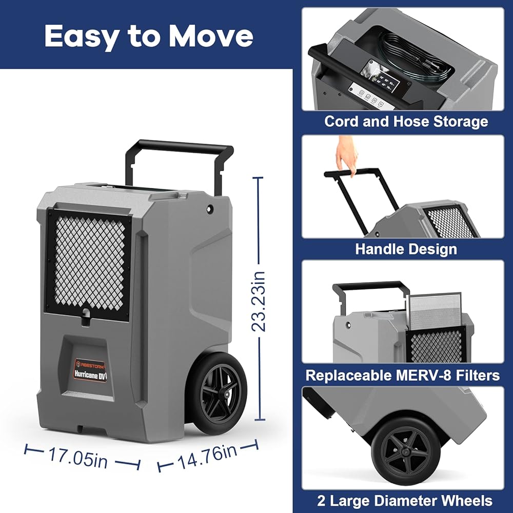 ABESTORM Commercial Dehumidifiers with Pump and Drain Hose, Compact Industrial Dehumidifiers for Basements or Garages, Water Damage Restoration, Auto Defrosting, Hurricane DV