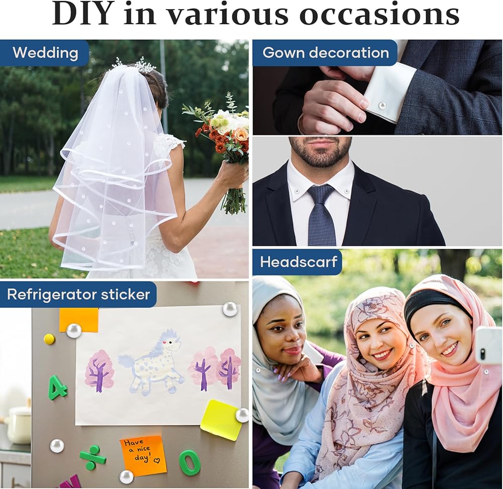 VERSATILE DECORATION: Use the magnetic pearl beads to embellish bridal veils, hijabs, shirt collars, neckties, scarves or other accessories to add subtle elegance and decoration.
