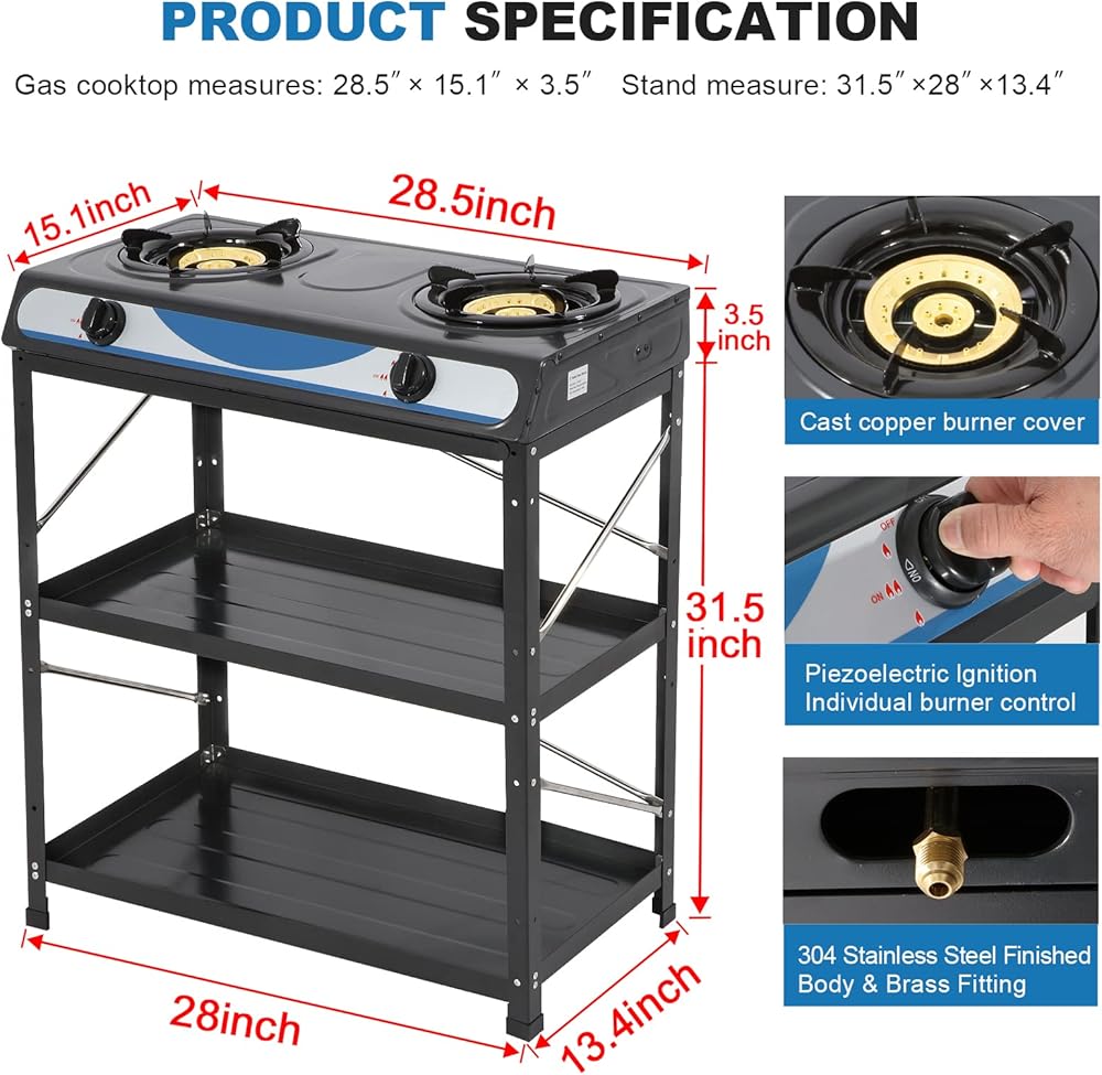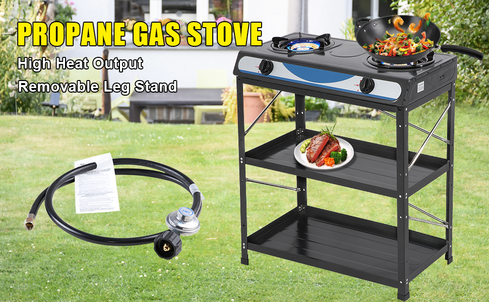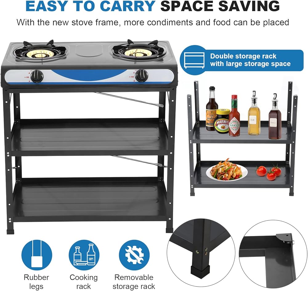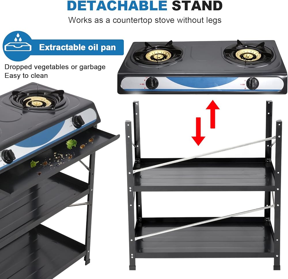 【MULTI-FUNCTION】 - This 2 burner gas stove has a detachable stand, portable and easy to carry; also works as a countertop stove without legs, which is perfect if you need more space