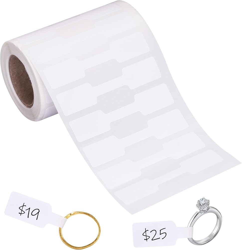 [ Package & Size ] - You will receive 1 roll of price tag stickers, a total of 500pcs jewelry price tags. Size Information: The unfolded size of the jewelry stickers is 2.36"/6cm(L), and 0.47"/1.2cm(W). The length is 1.18"/3cm when both ends are merged. Perfect for use with rings.