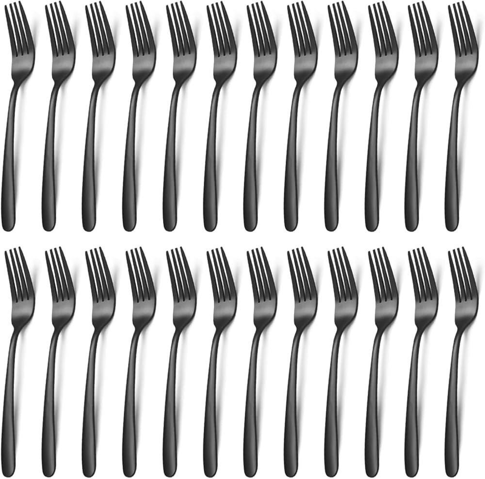 【24 PCS Dinner Forks】Our silverware forks contains 24 pieces dinner forks,more than 12 pieces forks,which can perfectly replace the forks lost in daily life. These forks are sturdy enough to meet any of your needs. Such as appetizers, salad, dessert, fruit, cake. Also, ideal for pasta, steak, fish, chicken, pork, and other dishes. Enough metal spoons for everyday use!