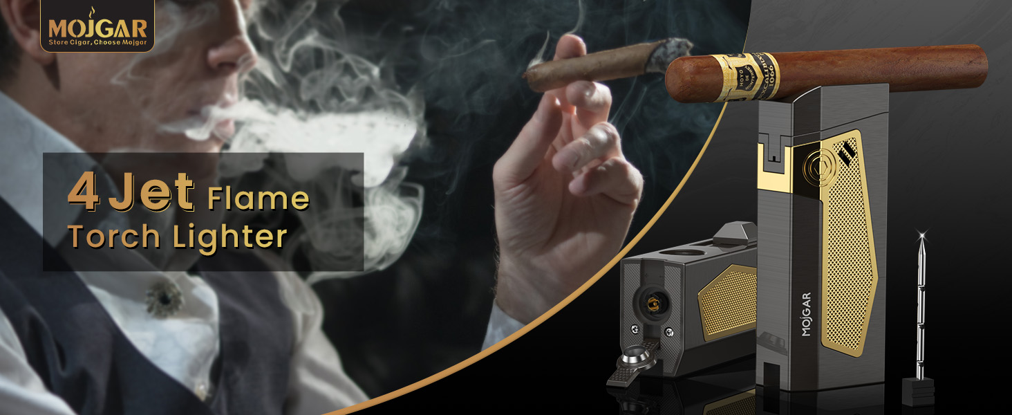 [QUAD FLAME DESIGN] - Cigar torch lighters stand out with its four precision engineered flames. With the push of the lighters button, you'll experience the power of not one, not two, but four roaring flames as you experience a new level cigar lighter of unrivaled convenience and performance.