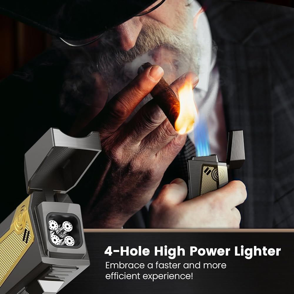 [WIND RESISTANT TECHNOLOGY] - Say goodbye to frustrating moments when the wind blows out your lighter flame. Butane torch lighters are equipped with advanced wind-resistant technology that keeps cigar torch lighter four flames stable and reliable even in challenging outdoor conditions. No more struggling to keep your flame alive!
