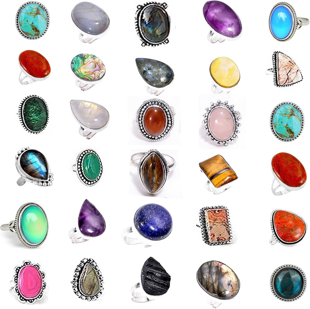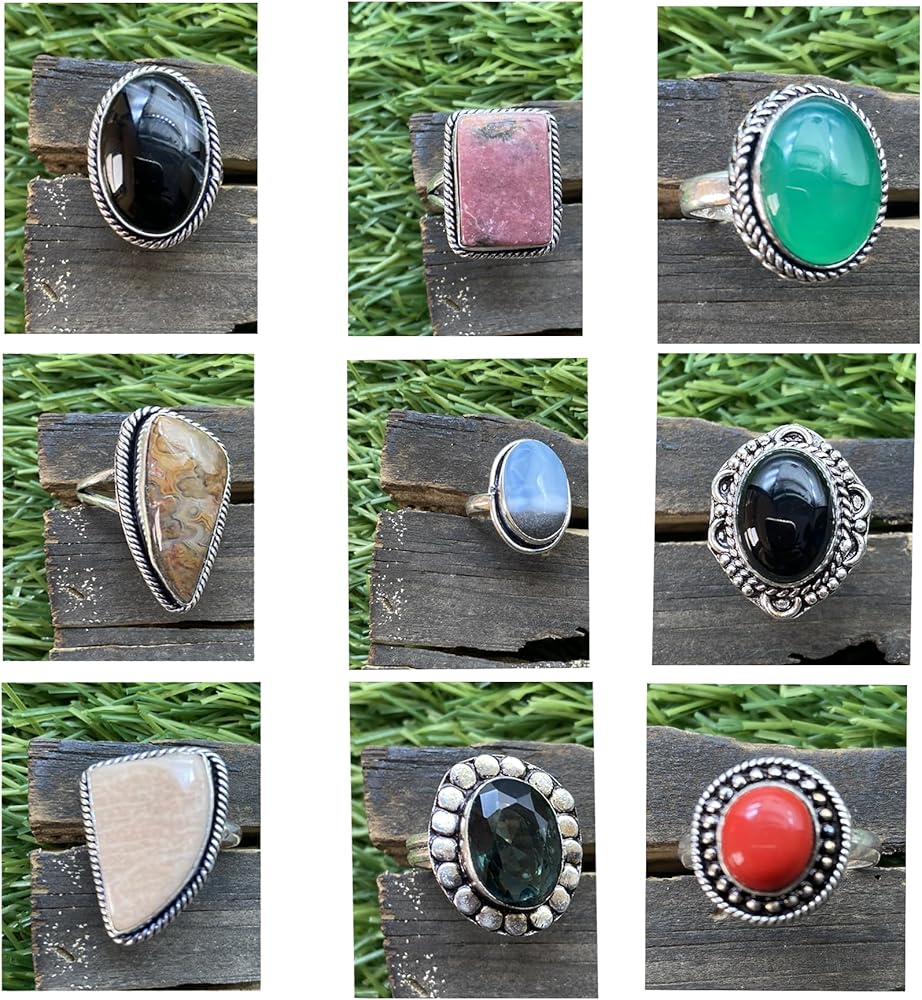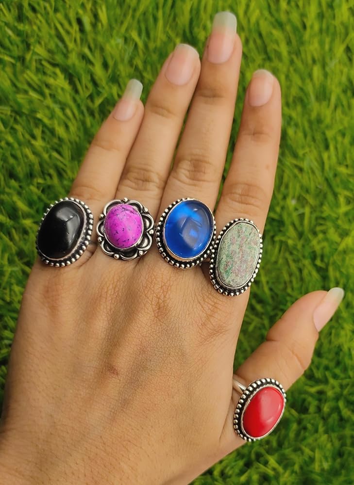 🌟 Assorted Gemstones: Discover a world of color and charm with our assorted gemstones. From captivating amethyst to serene turquoise, each ring in this set showcases a different gemstone, adding a dash of vibrant personality to your look.