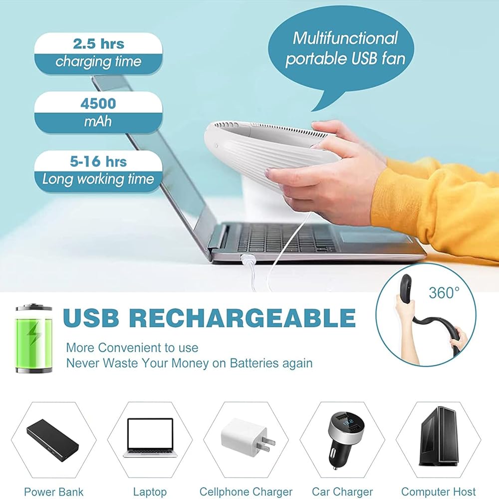 【360°Rotating Hanging Neck Fan】This cooling fan comes with the construction of lightweight, soft, skin-friendly, and flexible silicone material, the angle can be adjusted at will, it can better fit the skin, it can effectively prevent sliding, it is flexible and not easy to break. In addition, it has the function of heat insulation, which can prevent the fan from working too long to produce heat and cause discomfort to the neck.