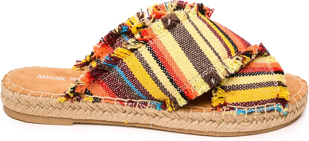 So sleek, so chic, and ready to complete your warm weather wardrobe. Featuring a comfy, frayed fabric crossband design and braided jute detail, these statement espadrille slides are the perfect finishing touch to any sunny day outfit.