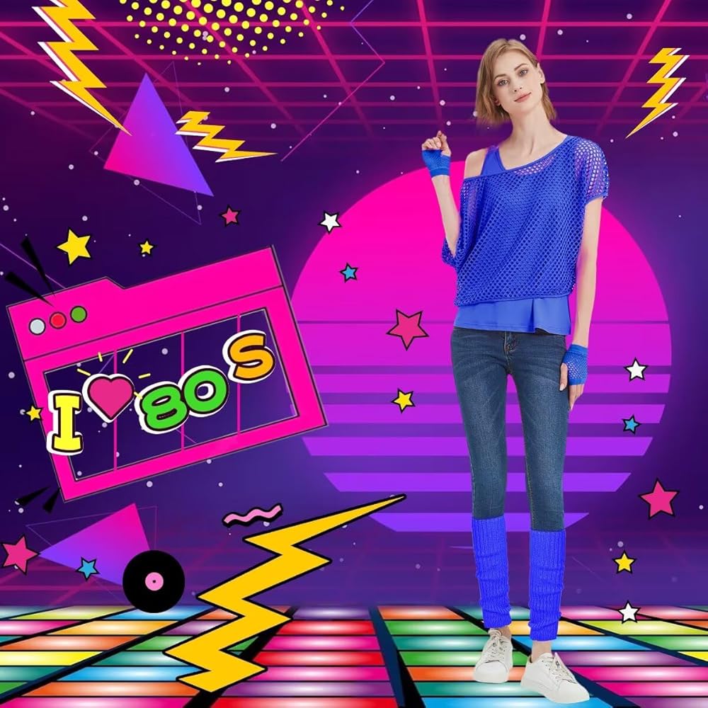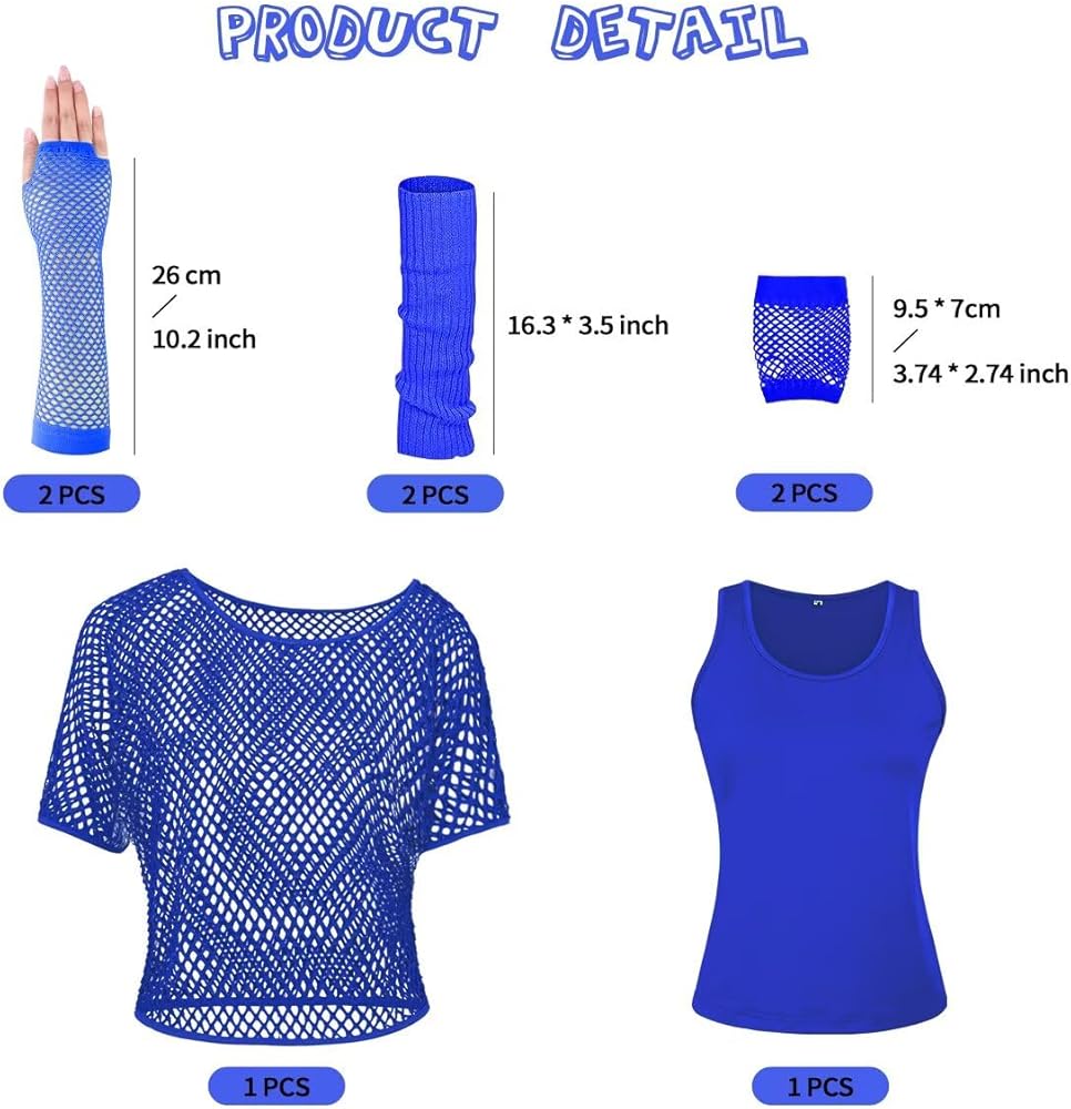 🧡Skin-Friendly Material - This 80s Costumes Fishnet party top is make from 100% polyester,not easy wrinkling and deformation. The tank top is made of 95% polyester+5% spandex, softness and comfort. Nylon and fabric gloves are designed with knit pattern with like colors and bright.