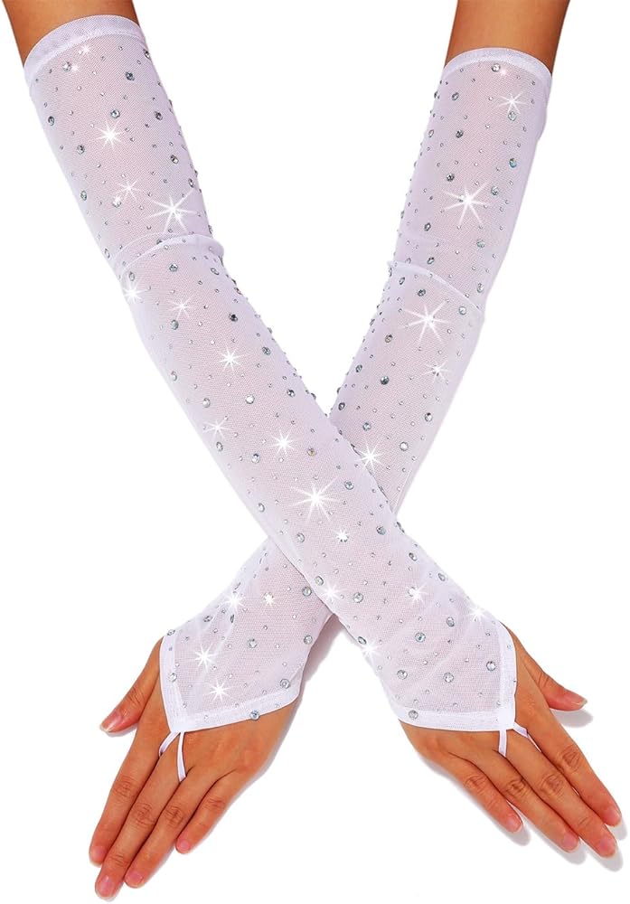 Sparkle Rhinestones Fingerless Gloves Nice to meet you at Gemily! Gemily was born in 1990. This is a store specializing in a variety of high fashion accessories for women and girls. The perfect combination of fashion elements and products,to create high quality products is our keynote.Our products are characterized by unique design and comfort.You can buy a wide range of all-match accessories for stylish at Gemily,including gloves, body chain, sunglasses,skirts and other other fashion accessories. The combination of rhinestones and satin gloves, fingerless design, can perfectly match any clothing. Make you stand out in the crowd, exuding confidence and elegance. Flexible and delicate gloves are your best choice as a gift or fashion accessory. You can give them to family, friends and colleagues.