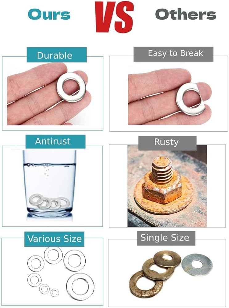 Product Details: This flat washer provides a larger circular bearing surface that helps prevent the nut or bolt head from going through the material. It can increase the bearing surface area of the screw and reduce the surface pressure exerted on the fastened object. They are designed for indoor and outdoor installations in sheet metal, docks, decks and more.