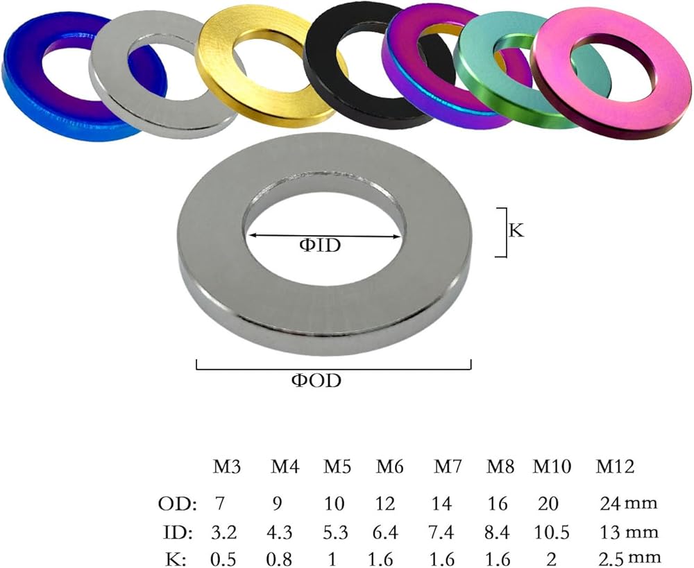 Precautions: Please confirm the compatibility of the Titanium Flat Washers before use, there are many sizes for you to choose, please confirm the size and color you need before buying, if you have any questions, please feel free to ask, we We will reply to your question within 24 hours on working days, if the size you purchased is the same as our details, we will not accept the return reason for the inappropriate size, and the customs clearance fee will be borne by the buyer.