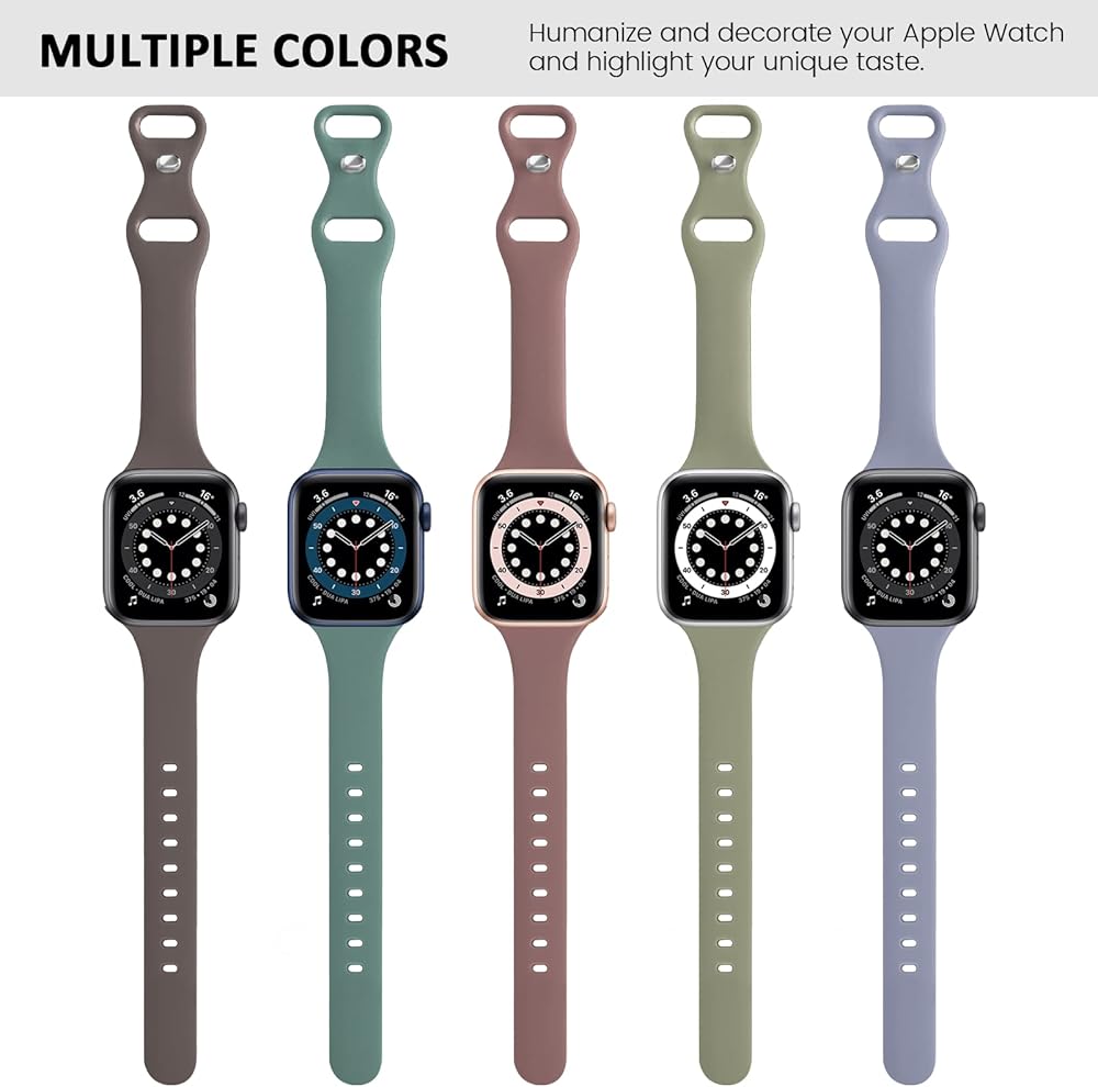 Compatible Models: Slim Thin Narrow Skinny 5 Pack Apple Watch Bands Compatible with Apple Watch 38mm 40mm 41mm 42mm 44mm 45mm 49mm, Apple Watch Ultra 2, Apple Watch Ultra, SE and Series 9, Series 8, Series 7, Series 6, Series 5, Series 4, Series 3, Series 2, Series 1.