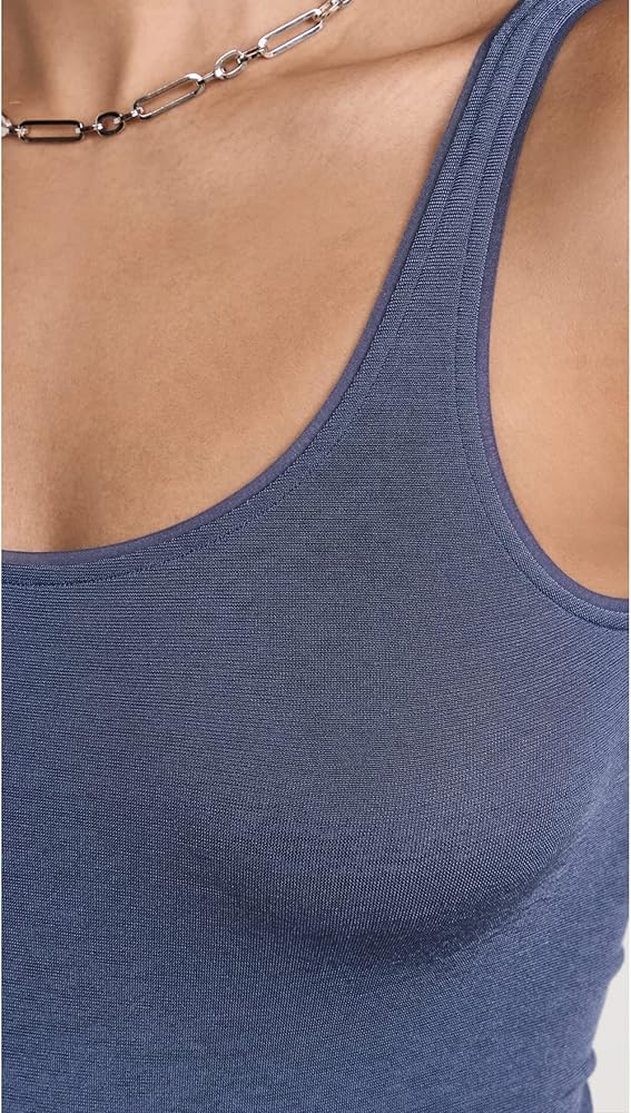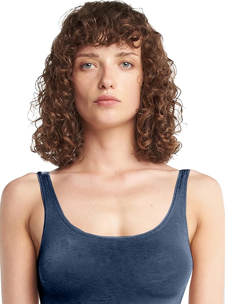 Stylish and fashionable. Tank top as a seamless string body with a feminine touch. Neckline and armholes are edged with a translucent band. The soft cotton on the inside and the delicate shimmer on the outside give it an extra touch of class.