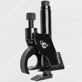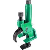 • Place bead breaker onto the rim with teeth and breaker foot between rim and tire bead, strike backplate if needed. Tighten rim clamp jaw until snug with a hand wrench.