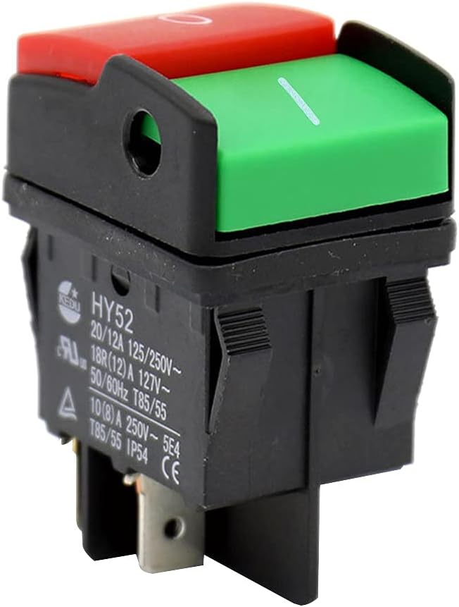 Belonging to the safety switch, the device will not turn on after power off unexpectedly, need to press the green start button will turn on.