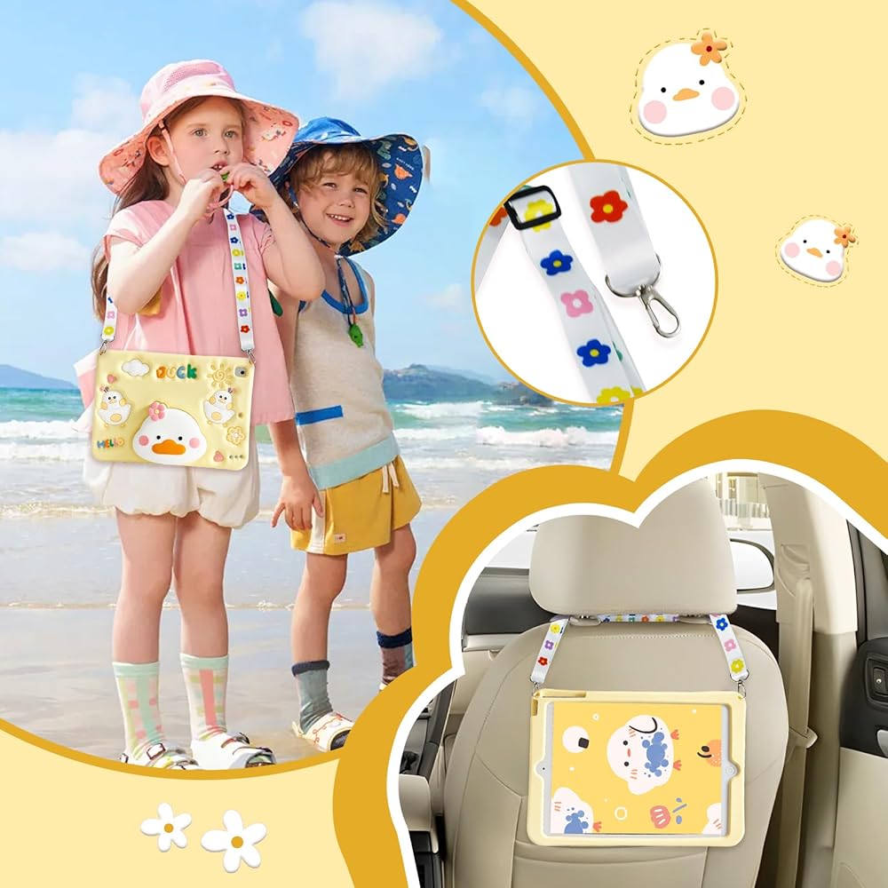 🍄【حافظة iPad مع حزام كتف】تضفي مادة السيليكون عالية الجودة لمسة ناعمة على حافظة iPad الجيل التاسع هذه، مع أحزمة كتف قابلة للفصل والتعديل، والتي ستكون مريحة لحمل الجهاز اللوحي أثناء الخروج أو السفر، وسوف تجلب المتعة إلى الأطفال، ستكون هدية خاصة وعملية لعطلات الأطفال، ومناسبة للأطفال والبنات والأولاد والمراهقين.