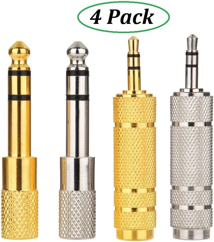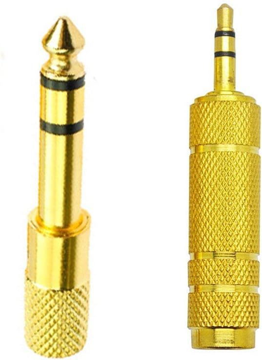 2 Types of adapters are included, 6.35 mm (1/ 4 inch) male to 3.5 mm (1/ 8 inch) female and 3.5 mm (1/ 8 inch) male to 6.35 mm (1/ 4 inch) female, each type has 2 pieces, one is golden and another is in silver color.