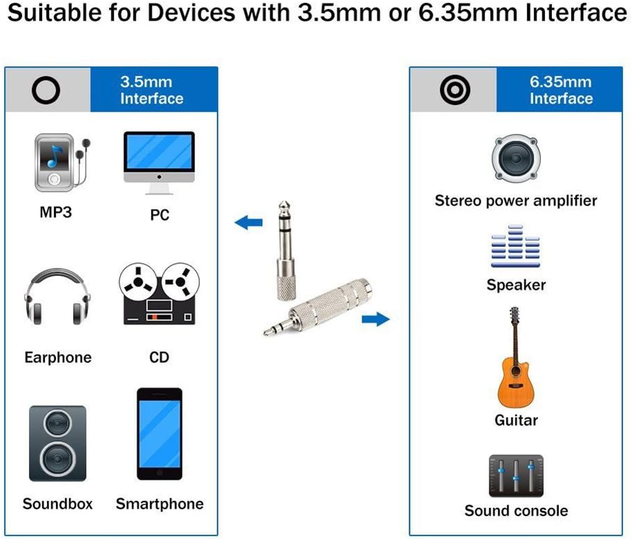 Allows your headphones or other devices to be compatible with most pro audio and home audio equipments with 6.35 mm socket.