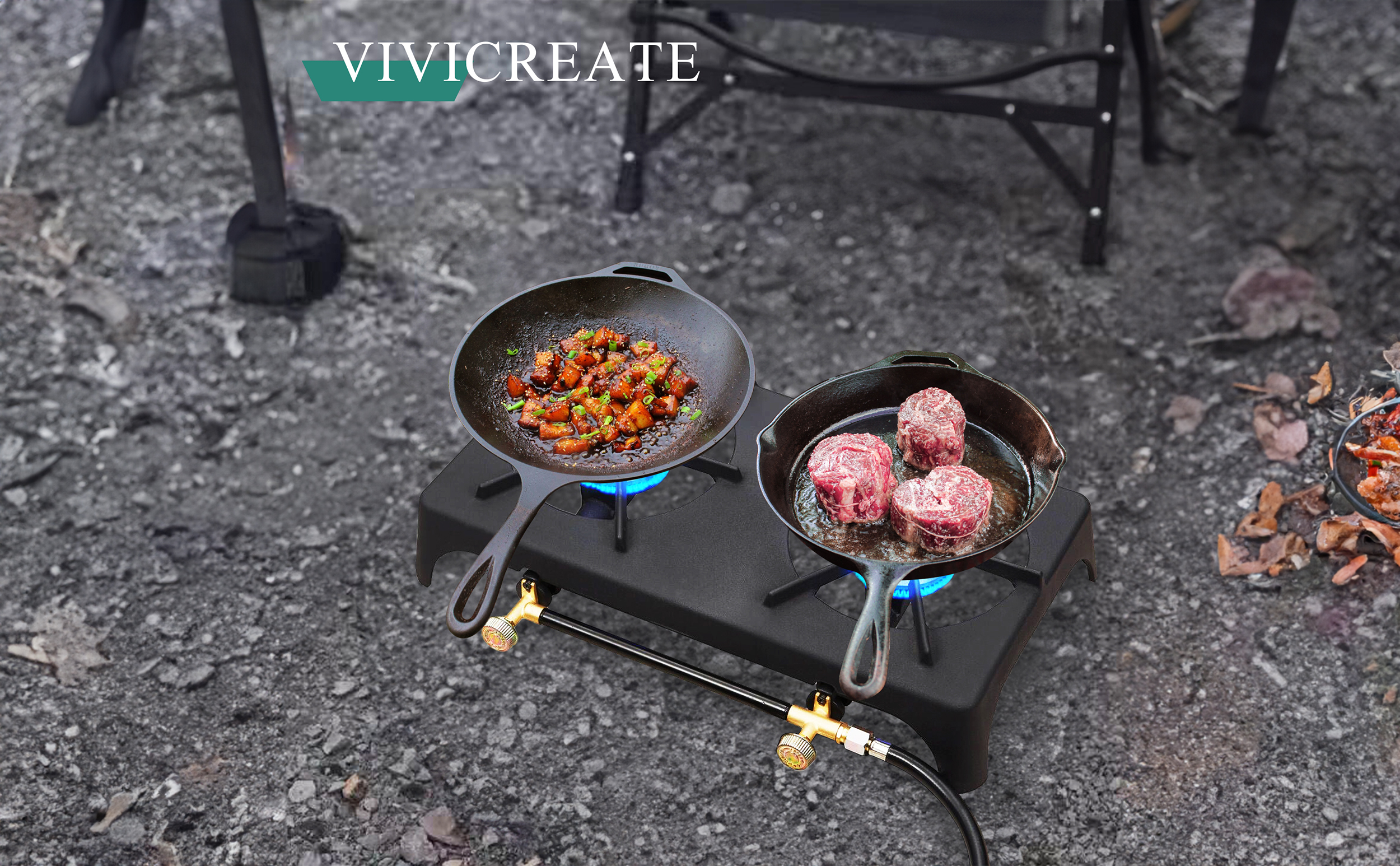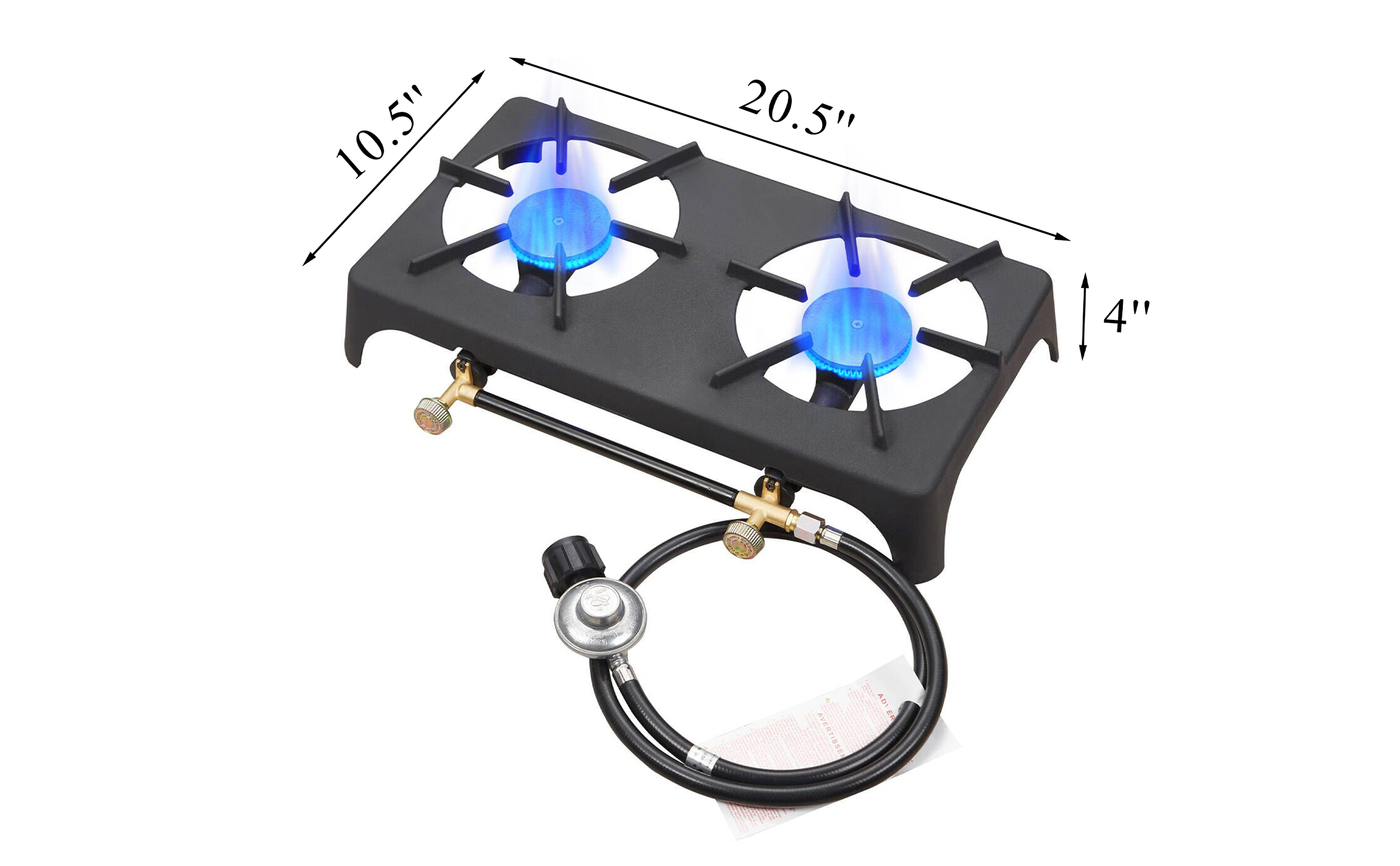 🔥 Full cast iron camping stove, whole body made of cast iron, very strong, support 200 lbs pot, low pressure Propane gas, with CSA listed regulator and gas hose, Standard Gas Stove with Stainless Steel Burner, Adjustable Temperature Control for Cooking and Warming (Black)
