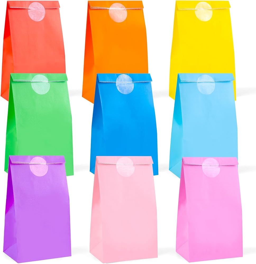 Incredible Value Pack - Our package includes 36 paper gift bags in an assortment of 9 vibrant colors, including blue, pink, green, yellow, purple, and more.