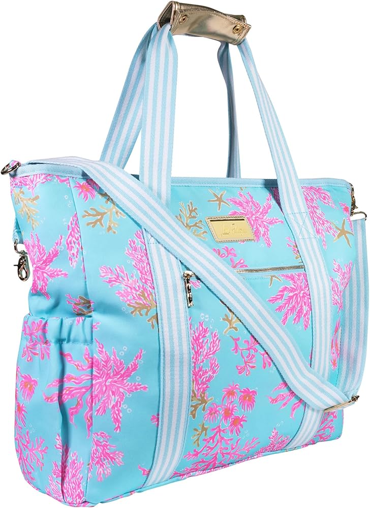 Premium Quality: Picnic cooler bag is made of a high quality canvas material that is featured in the vibrant Lilly Pulitzer print, Via Amore Spritzer, along with a metallic gold logo plaque. Complete with metal hardware and thick cotton straps for added durability, this insulated bag will be your new favorite summer-time companion!