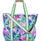 Fill this soft sided cooler with all of your snacks, drinks, and sunscreen for a carefree day spent outside. A vibrant Lilly print paired with an adjustable strap and gold finishes makes for a pretty, comfortable accessory. Thermal bag measures 17.5 inches (44.5 cm) long x 15 inches (38 cm) wide x 6 inches (15 cm) tall and has one main compartment that's easy to load/unload. Plus, the portable picnic bag has a large exterior pocket for storing your personal items separate from your snacks. Whether used as a large lunch box, insulated grocery bag, or a picnic bag on a sunny day this cute cooler gets you there in style. Bonus...it also comes with a durable 9in x 0.5in x 6.6in zipper pouch for storage of smaller items.