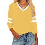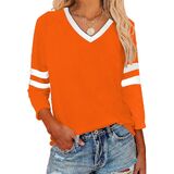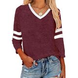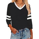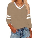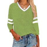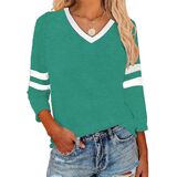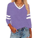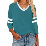 Womens 3/4 Sleeve Fashion Crewneck Tops Patchwork Blouse Casual Loose Comfy Shirt