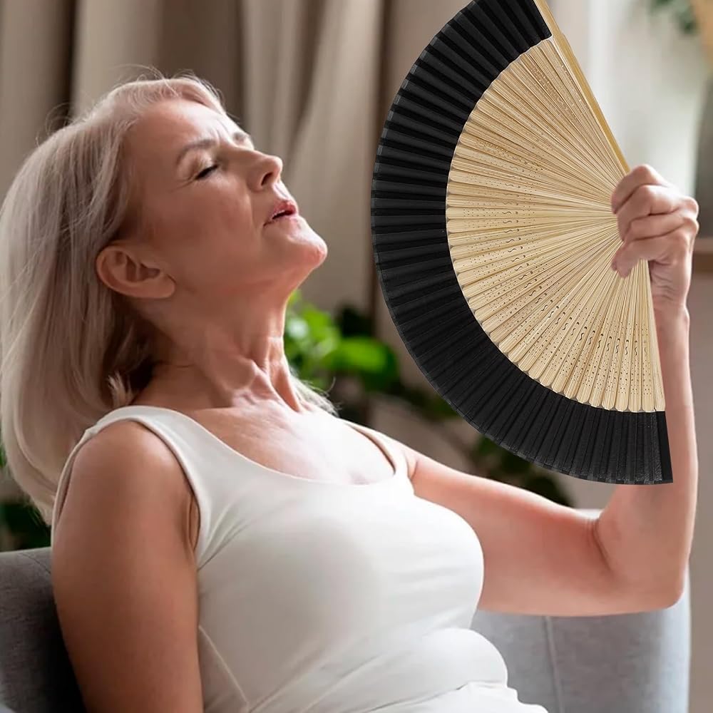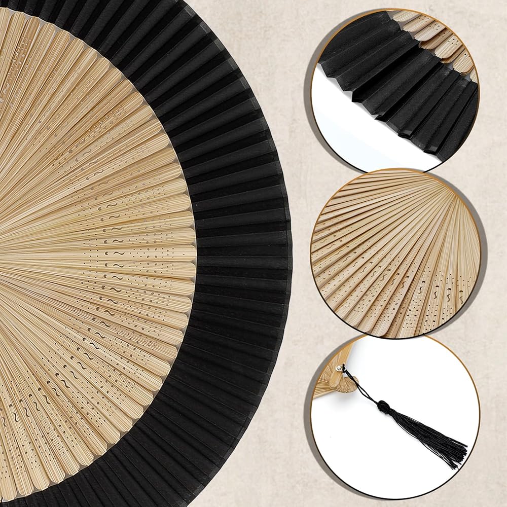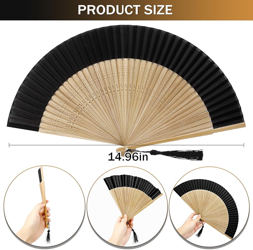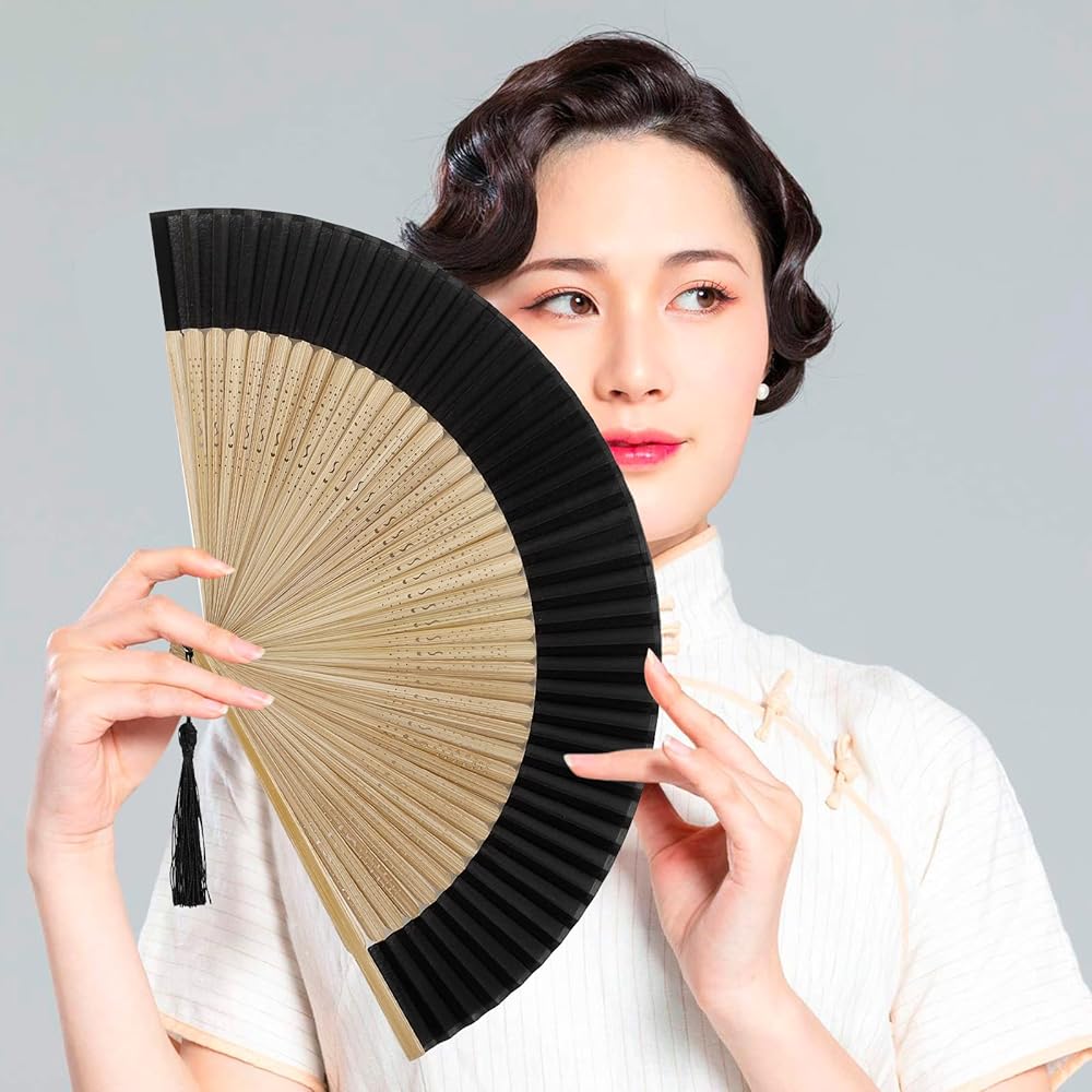 Folding Hand Fan for Women, Silk Paper Foldable Fans with Tassel Chinese/Japanese Charming Elegant Vintage Retro Style for Hot Flash, Church, Decoration, EDM, Music Festival, Dance, Party, Performance, Women Lady's Girls Best Gifts (Sexy Bamboo)
