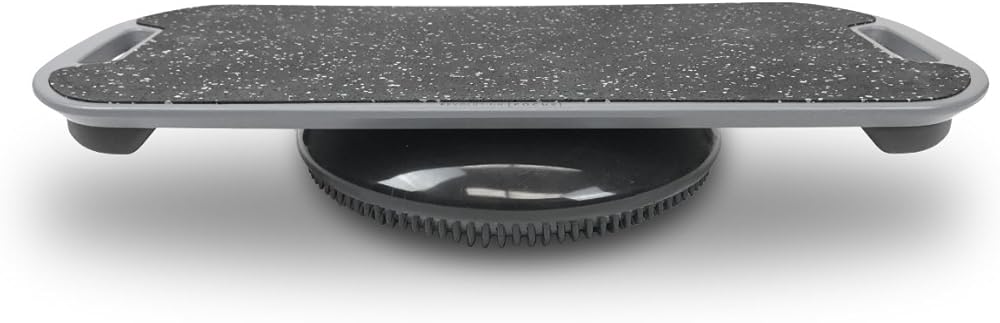 CHALLENGING 2-PIECE DESIGN: This balance board is designed to provide a challenge and actually engage your entire body. Just the right amount of motion to keep you active, but not so much that you can't keep your normal grind on. This is not your basic 1-piece board...so easy your intern could do it. No way.
