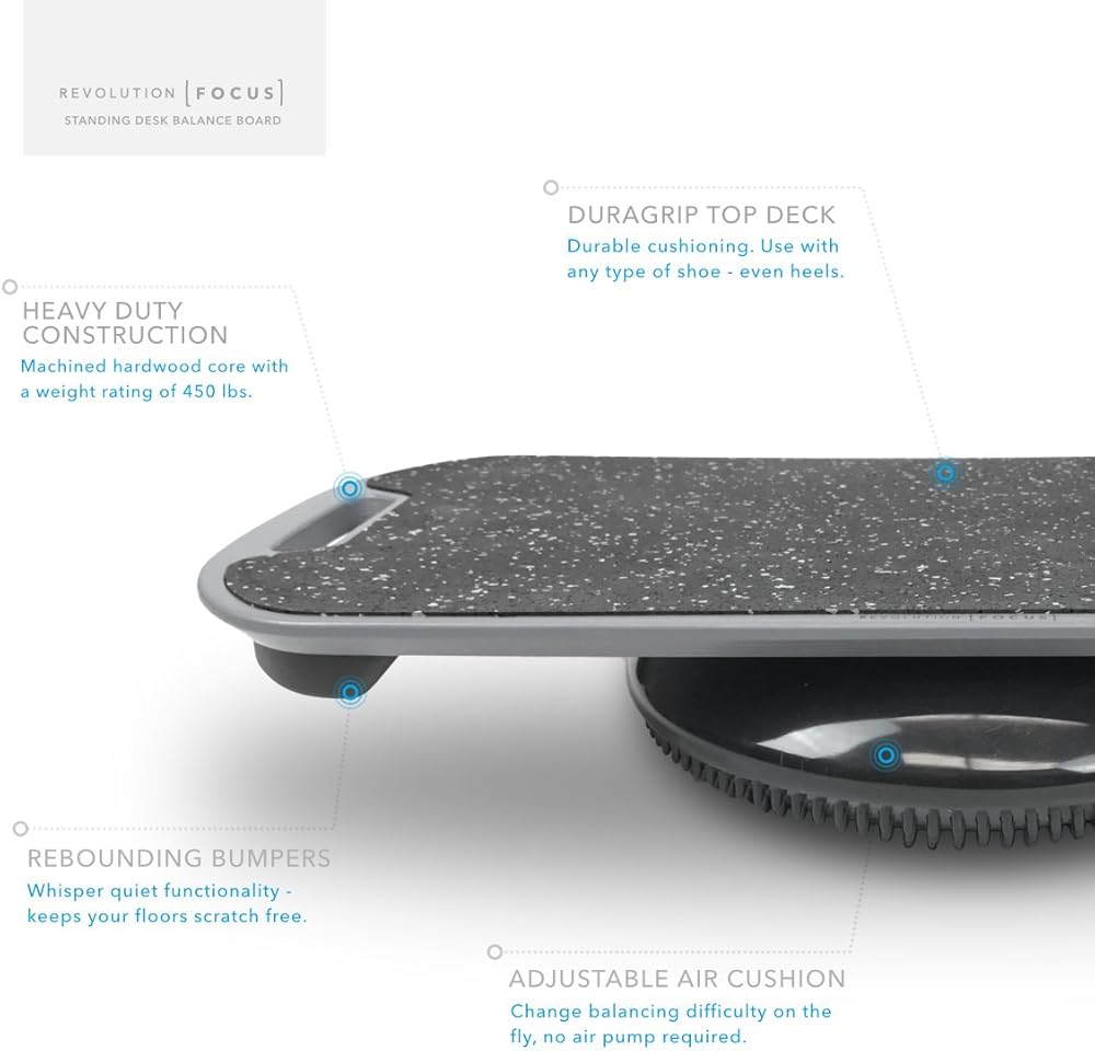 FOCUS PRO EDITION: Do you have the skills? The Pro edition includes the standard air cushion base plus the more advanced roller base, which will take the balance challenge to the next level. Go ahead...see which of your coworkers can hang with the big boys and girls.