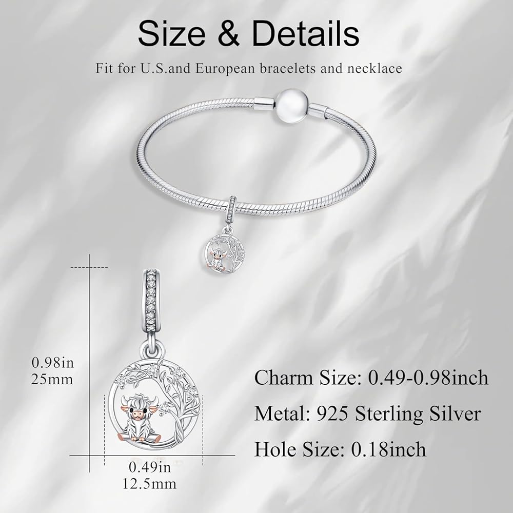 HIGHLAND COW GIFT- Charm Size: 0.39*0.90inch. Hole Size about 0.18inch, which can pass through most U.S. and European bracelets, and fit for charms bracelet and necklace.