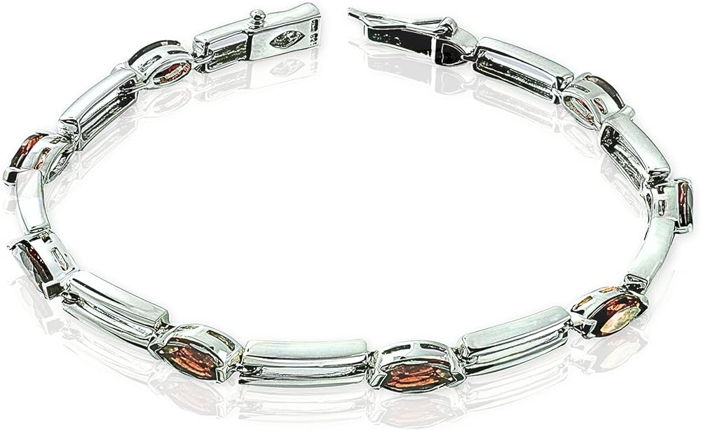 Sterling Silver 925 Tennis Bracelet GENUINE GEMS Marquise 8x4 mm Rhodium-Plated Finish 7" Long