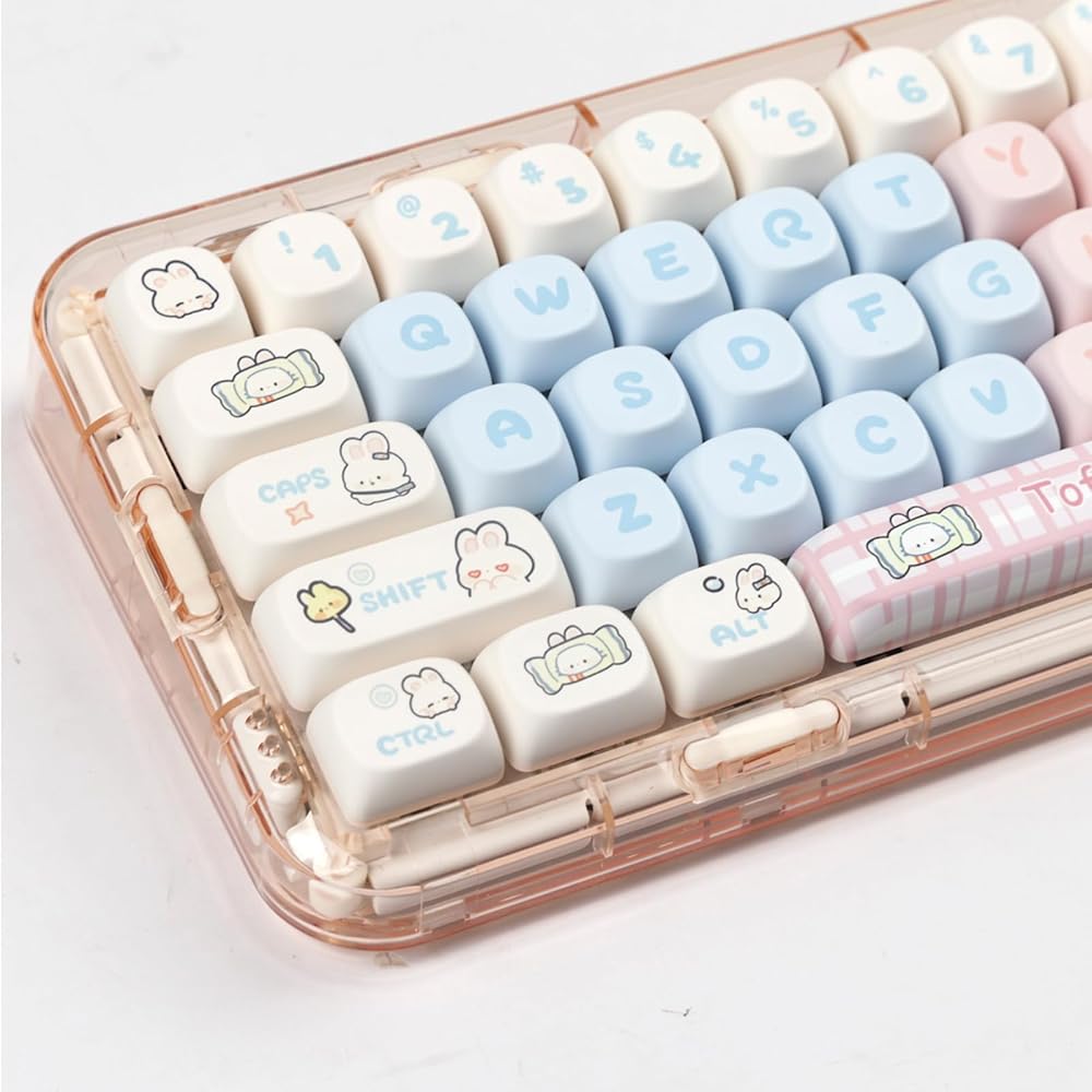 Cute Pink Milk Rabbit Keycaps: With their pink and blue cute rabbit pattern design, the MOA profile cute keycaps are sure to impress. They are perfect for gamers, typists, and anyone who wants to add a touch of fun and style to their workspace.