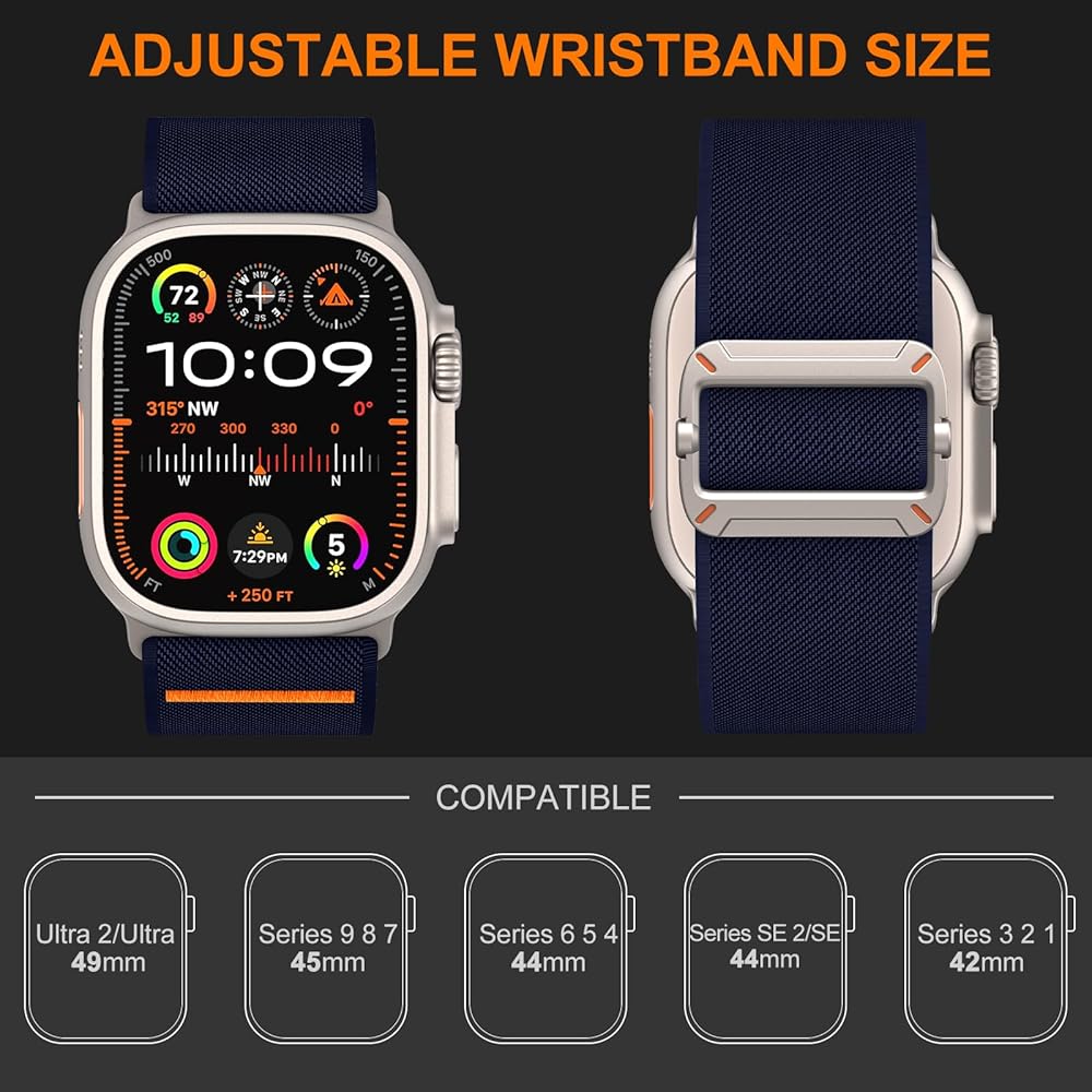 Compatible Models: For Sport Nylon Straps Compatible for apple watch band 49mm 45mm 44mm 42mm 41mm 40mm 38mm width for men women lady girls ; Compatible with Apple Watch Nike Ultra 2 Series 9 ,8,7,6 SE,5,4 ,3 ,2.NOTE: Just sport band, No watch included.