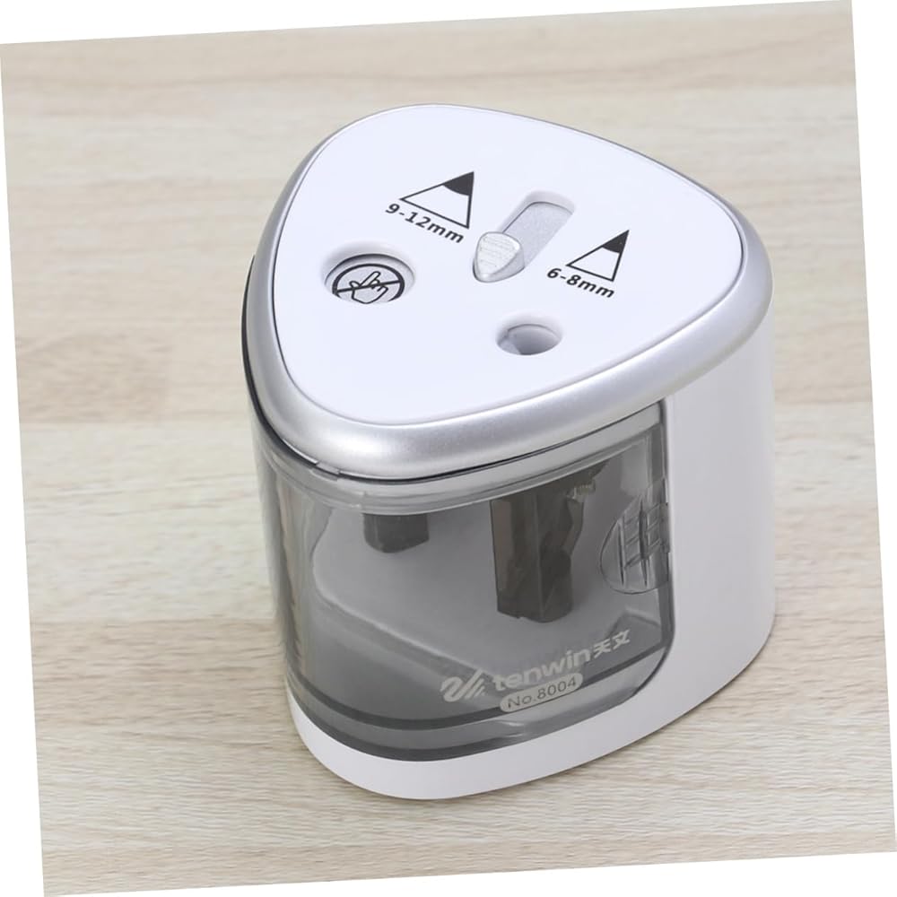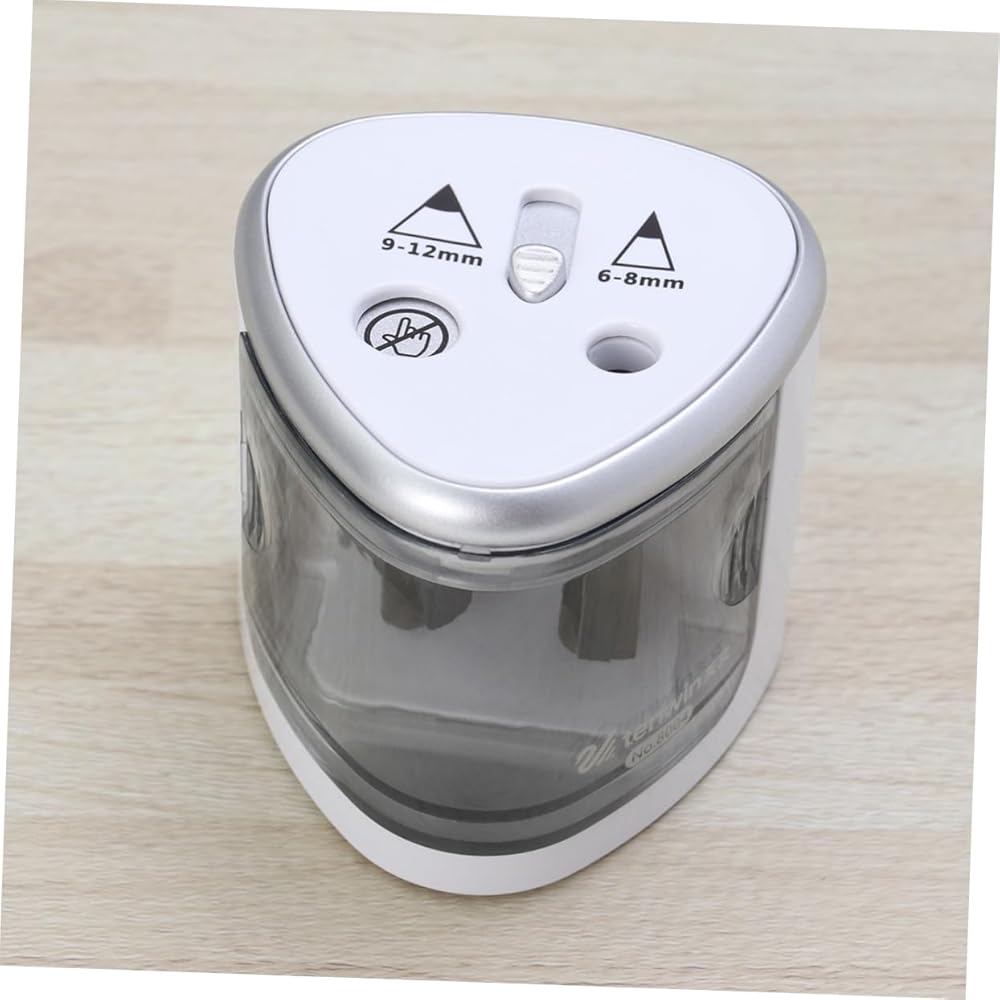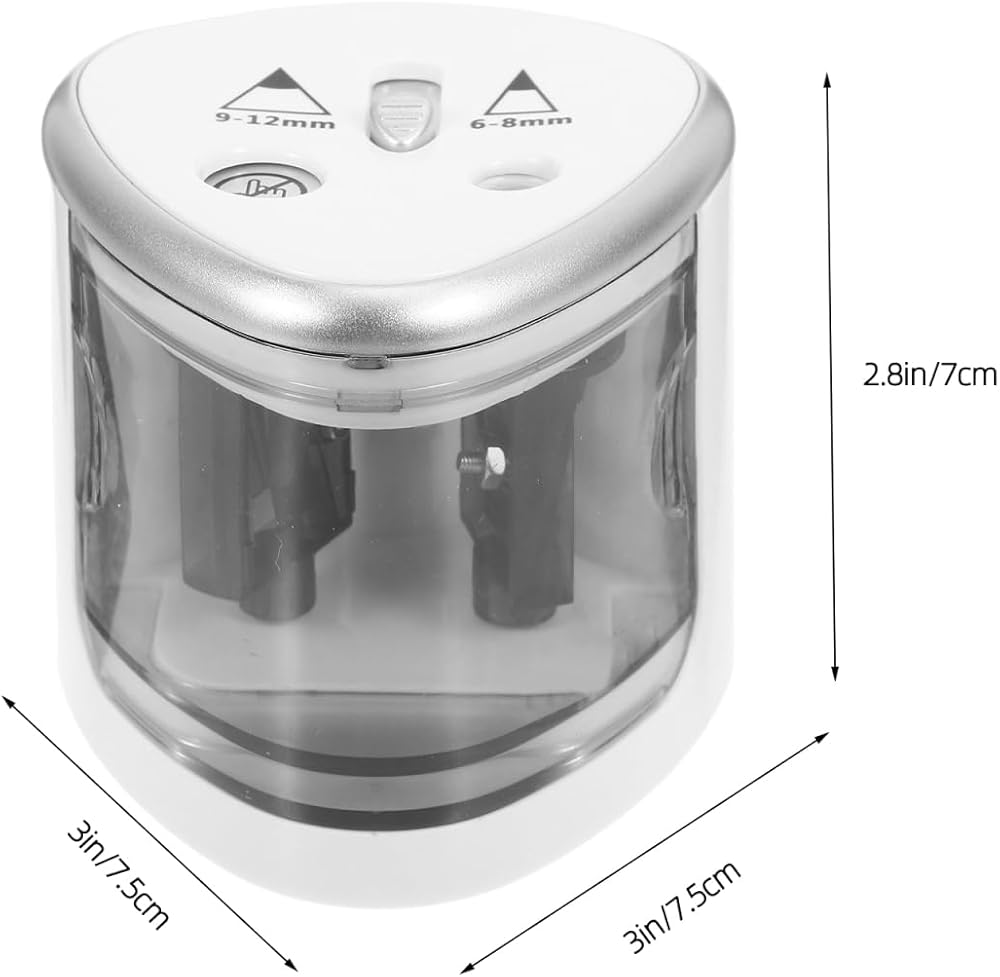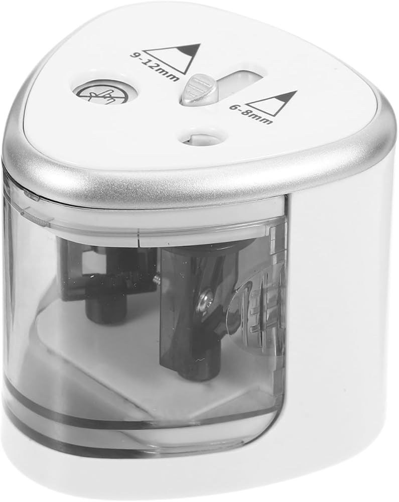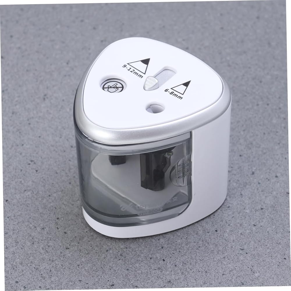 Electric sharpener heavy duty-- this sharpener will stop working if the shavings box is open. the protection lid for 9-12mm prevents the inserting their fingers into the hole, which makes it an choice for young . artist , and professionals at home, and office. it can also be used as a cosmetic sharpener for eyebrow lip liner eyeliner.