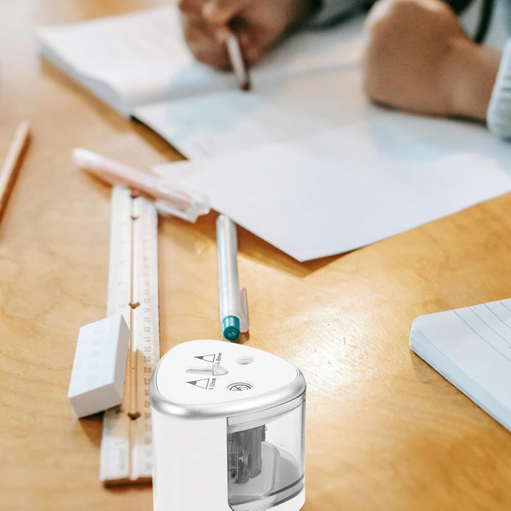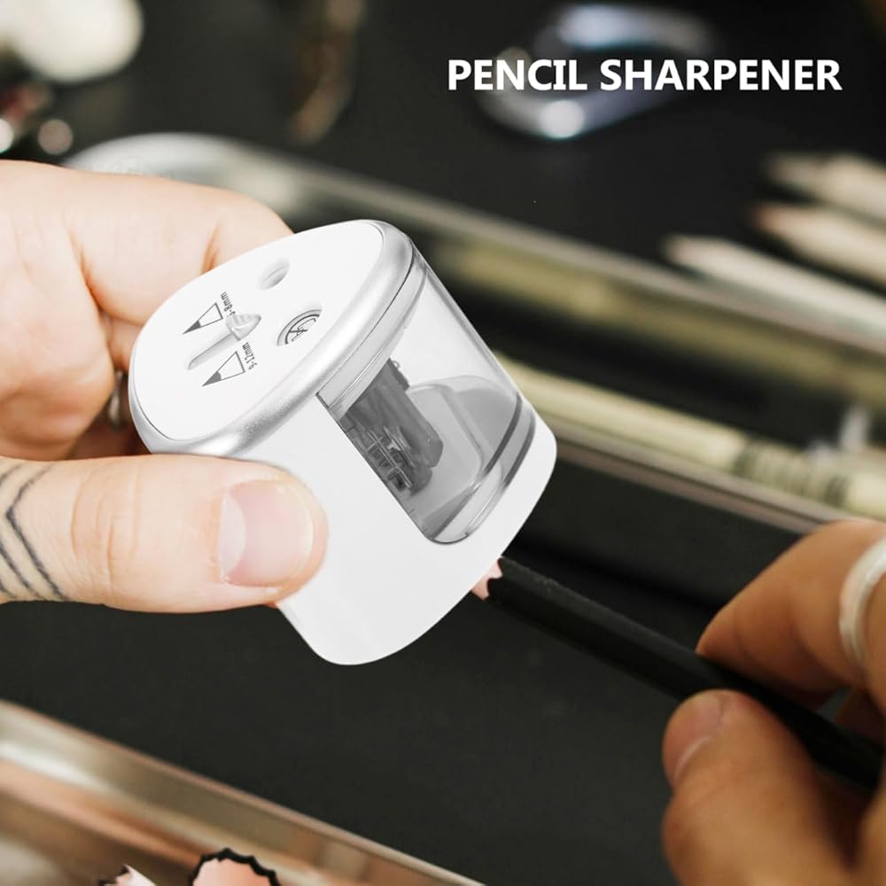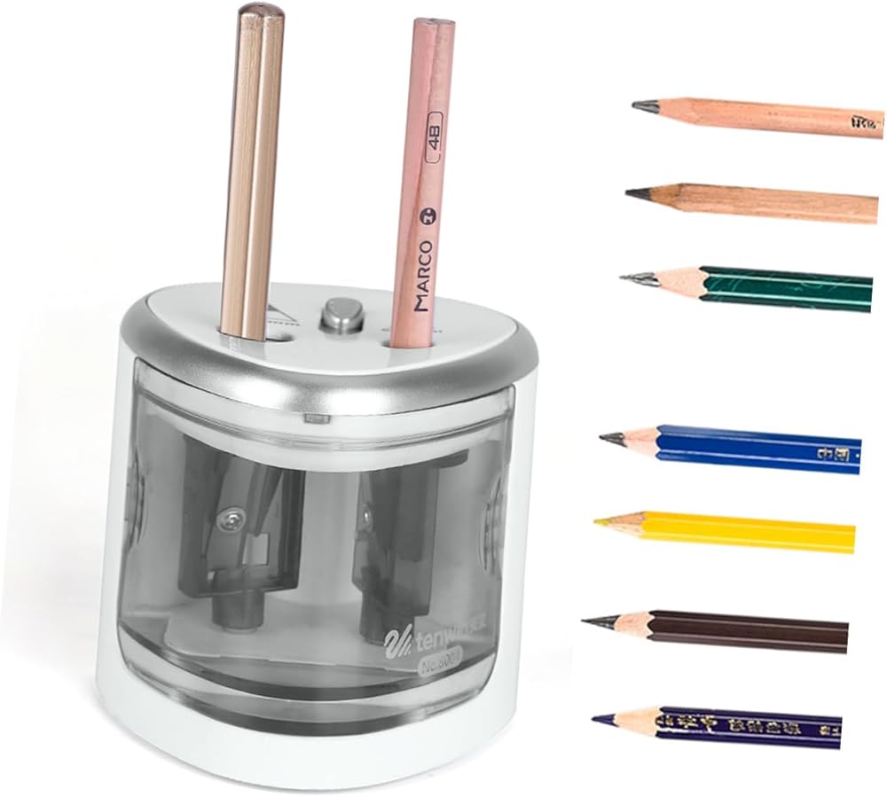 Mechanical pencil-- its powerful electric motor will polish and sharpen every pencil to a perfect and durable point in only 3-5 seconds with ease. two holes of different sizes are good for all 6-8 mm and 9-12mm diameter pencils.