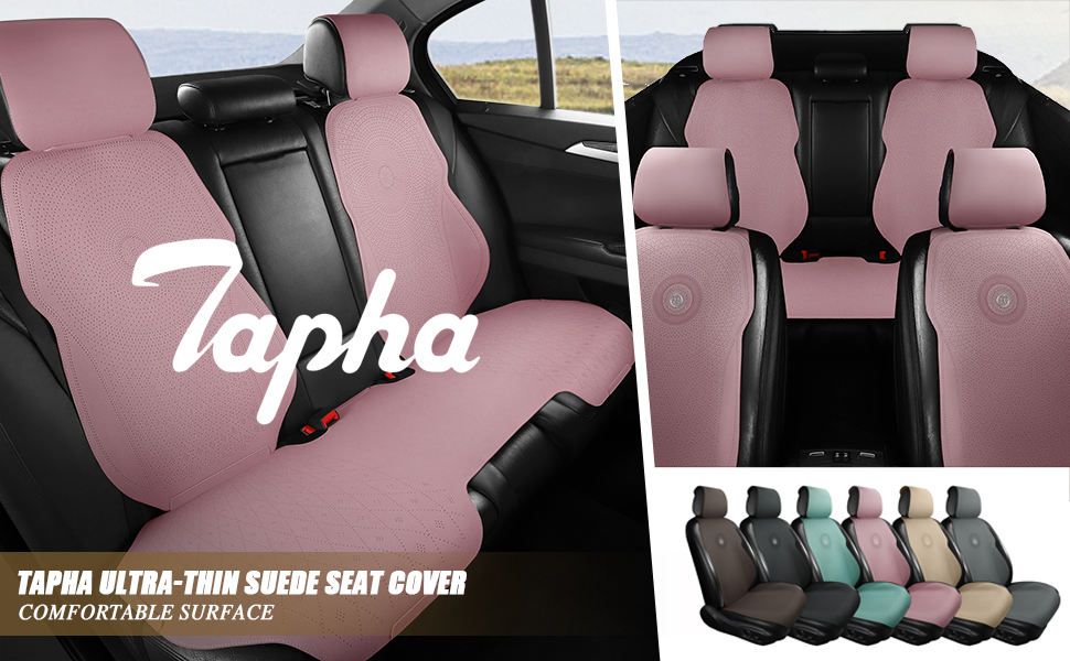 Luxury Suede Leather Universal Car Seat Cover with Headrest, Ultra-Thin and Breathable, Highlight Car Interior with Suede Leather, 5 PCS – Individual Seat Covers for all 5 Seats (Pink)
