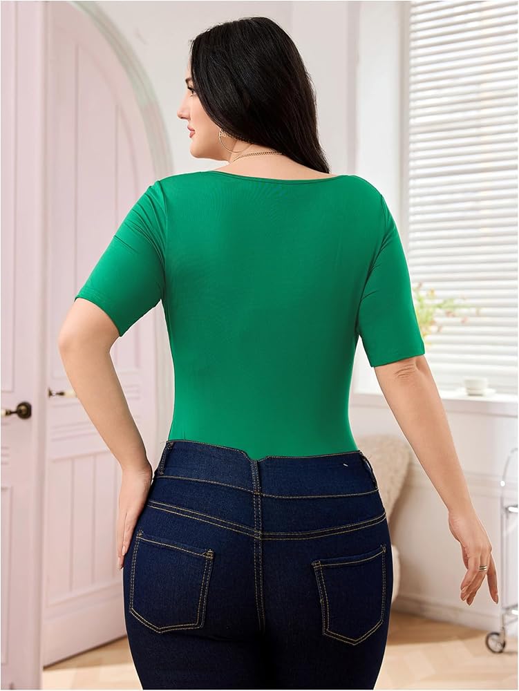 Design: This plus size basic bodysuit for women with short sleeve and square neck, make you feel more at ease,helps you look great and charming on the whole