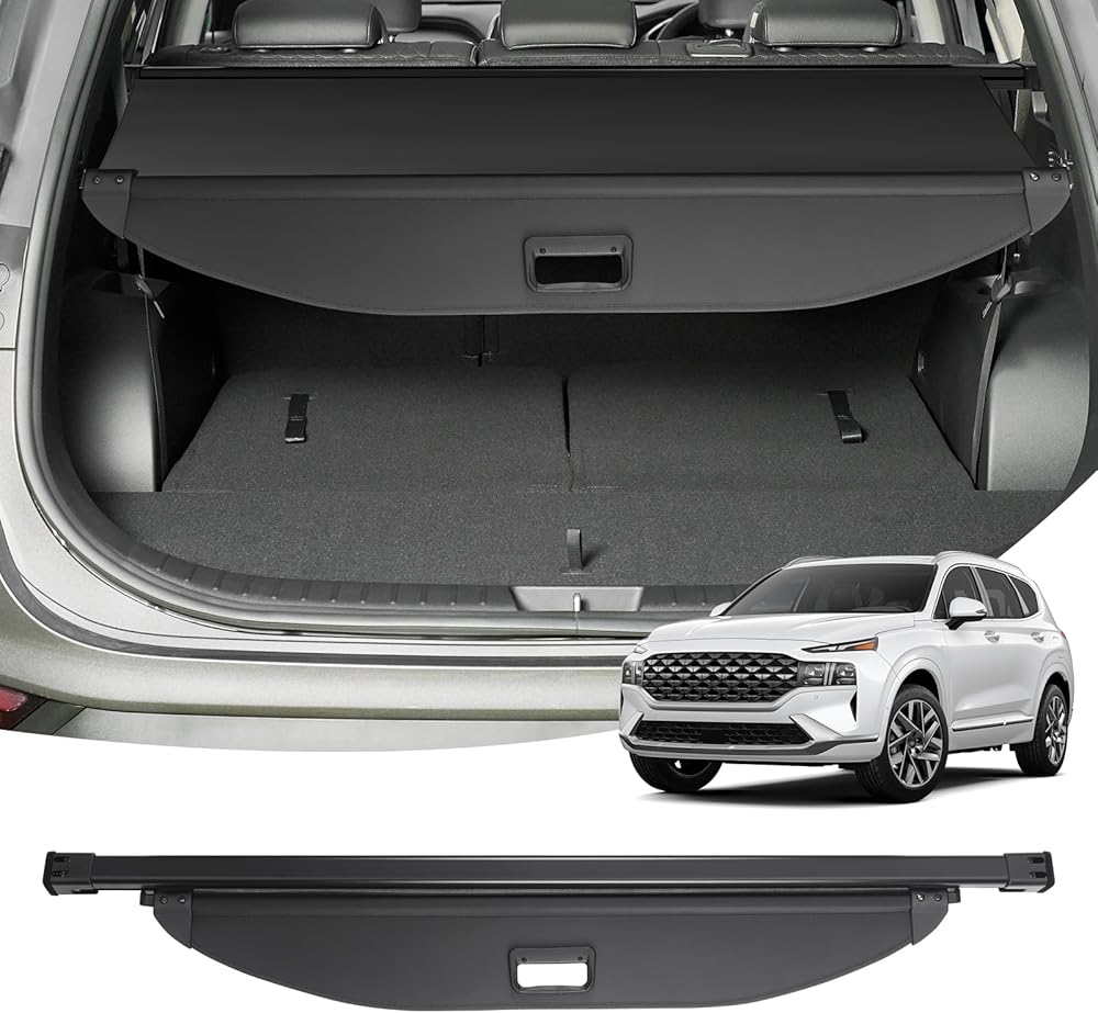 Powerty Cargo Cover for Hyundai Santa Fe 2019 2020 2021 2022 2023 Accessories Trunk Cover Rear Trunk Shade Retractable Trunk Shield Shade Tonneau Security Cover Black 5 Seats