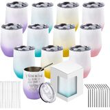 【12 PackSublimation Tumblers】The package includes 12 x 12oz multicolor sublimation tumblers, 12 x gift boxes with windows, 12 x leak-proof lids,12 x metal straws, 12 x straw brushes. A sufficient number of tumbler sets and accessories can satisfy you to make personalized cups for your family, friends, and loved ones.