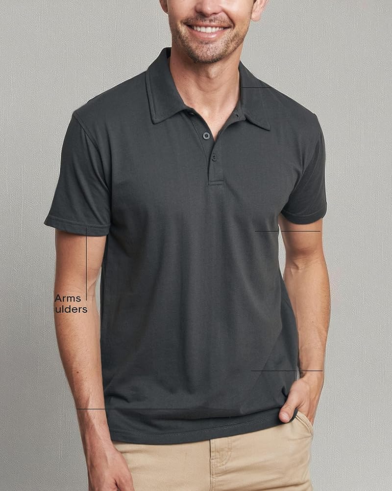 PERFECT FIT, FLATTERS EVERY BODY: Our fitted polo shirts for men hug arms and shoulders with room through the body for easy, all-day movement